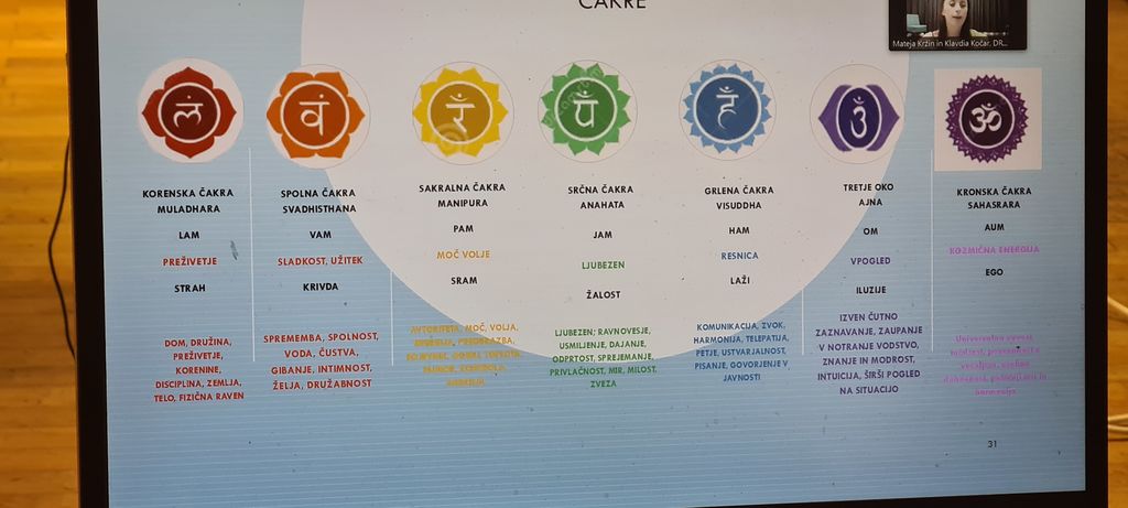 7 glavnih čaker – korenska čakra, spolna čakra, solarni pleksus, srčna čakra, grlena čakra, tretje oko in kronska čakra.