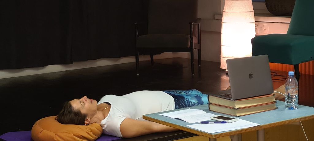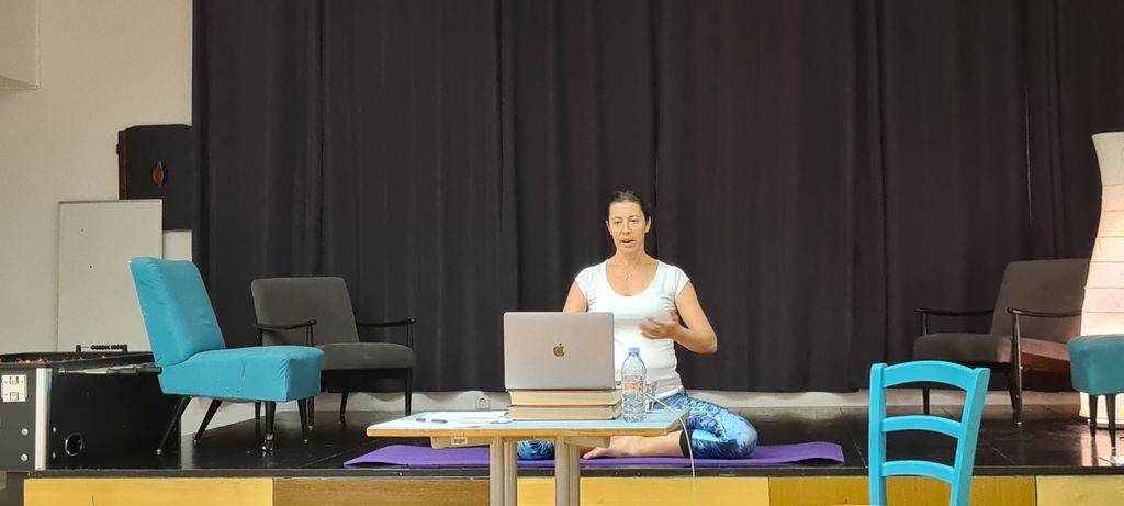 Glavni del izkustvenega predavanja je bila 45-minutna skupna izvedba zgoraj omenjenih tehnik čuječnosti, ki dokazano pomagajo pri obvladovanju stresa – nežno gibanje z elementi joge, kratka meditacija in skeniranje telesa. Ker je izkušnjo teh tehnik trebadoživeti, vas predavateljica lepo vabi na njene jesenske programe (v septembru 2021) za obvladovanja stresa s pomočjo čuječnosti po metodi MBSR.