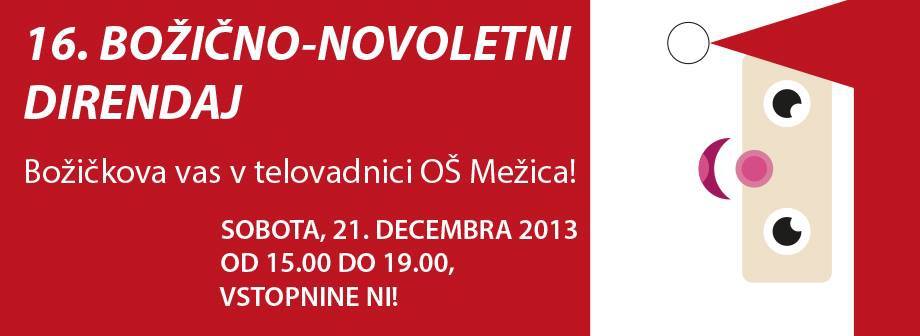Vse otroke - majhne in velike, skupaj s starši ali brez - vabimo na tradicionalni že 16. BOŽIČNO - NOVOLETNI DIRENDAJ.