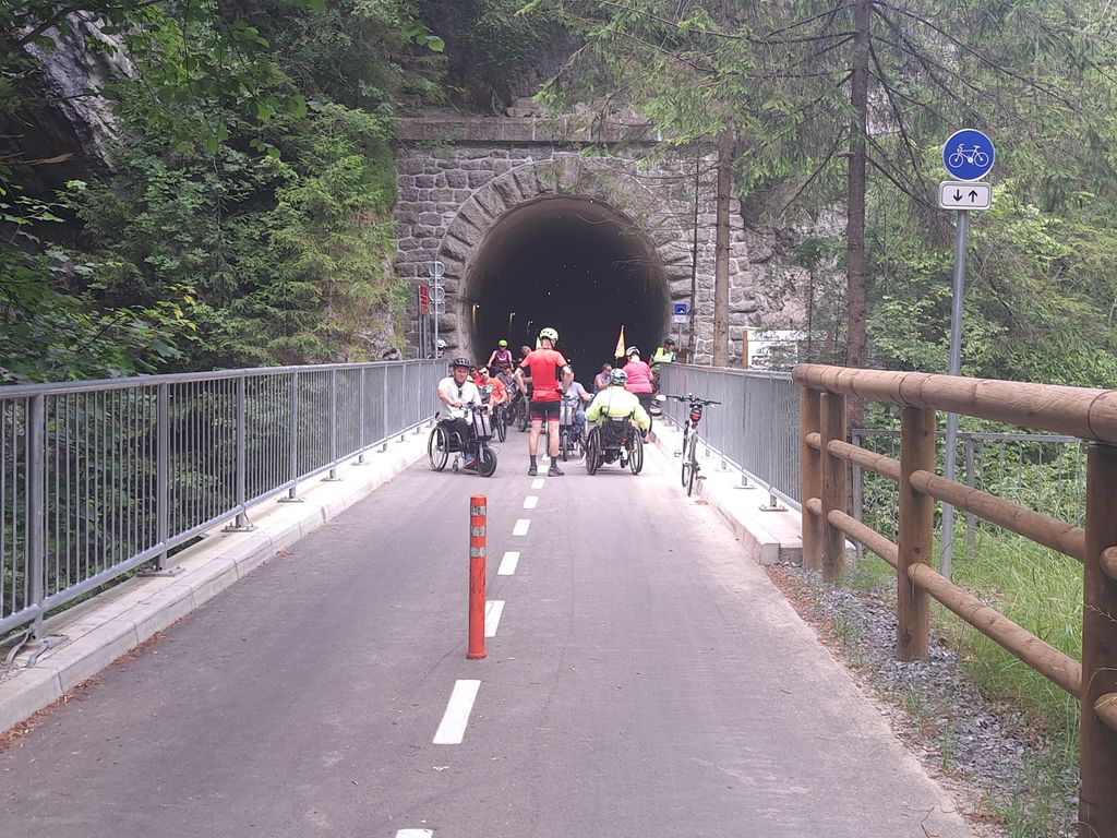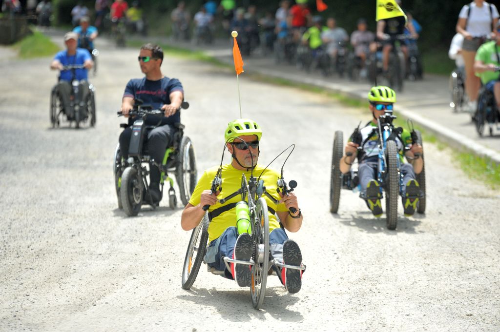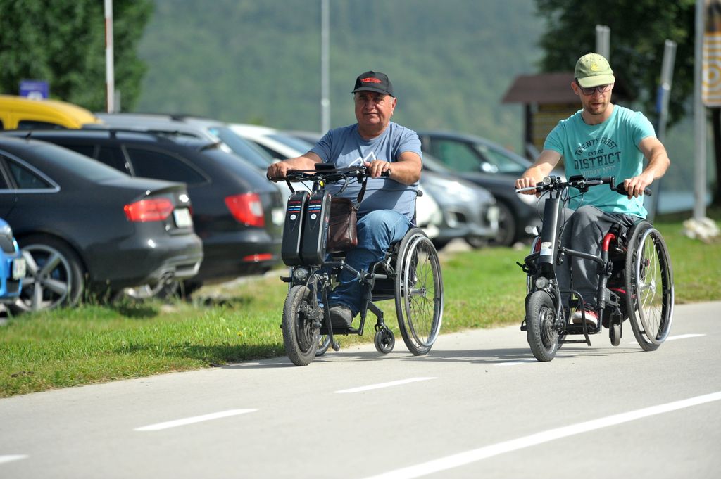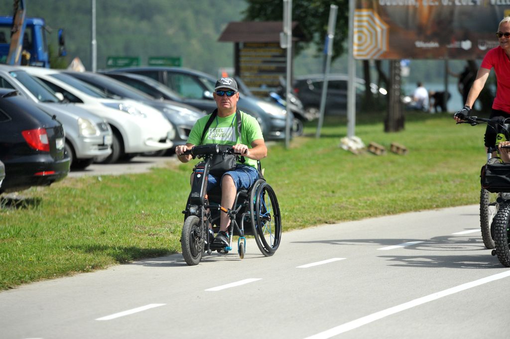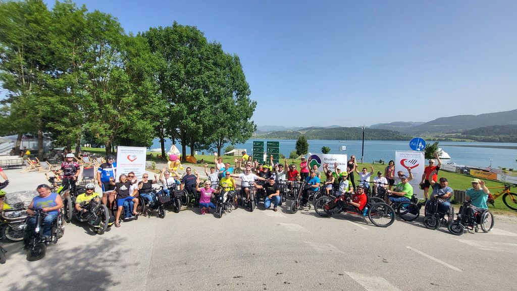V soboto, 22. junija, smo se zbrali v Velenju v Kampu Jezero, kjer nas je pozdravil Peter Dermol, župan Mestne občine Velenja. Iz Velenja smo pot nadaljevali proti Slovenj Gradcu. Na novo odprti del kolesarske poti – imenovane Štrekna, je speljan po opuščeni trasi nekdanje železniške proge, ki je povezovala Velenje z Dravogradom. To je vsekakor ena od infrastrukturno najbolje urejenih tovrstnih kolesarskih poti v Sloveniji, ki ima izrazito slikovito panoramo, pogled na Pohorja in Uršljo goro ter doživetjem ob vožnji skozi sotesko Huda luknja. Kljub vsemu so naši spremljevalci poskrbeli za varna prečenja s cestnimi odseki, spremljevalni vozili pa sta nudili pomoč. V Slovenj Gradcu, pred atrijem graščine Rotenturn, nam je dobrodošlico izrekel dr. Peter Pungartnik, podžupan Mestne občine Slovenj Gradec. Dobili smo tudi energetsko čokoladico. Na sedežu Društva paraplegikov Koroške so udeleženci lahko (do) polnili baterije in se okrepčali. Na vrnitvi nas je malo pred Mislinjo pogostila z domačim bezgovim sokom Andreja Srt iz občine Mislinja. Ustavili smo še pred vhodom v jamo Huda luknja in zvedeli več o njej in tej soteski. Na cilju sta nas pričakali dve prijazni predstavnici Zavoda za turizem Šaleške doline, ki sta nas poučili o zgodovini nastanka jezer v Šaleški dolini, ter o številnih lepotah, ki jih nekoč to degradirano območje ponuja. Sledila je še krajša nagradna igra z lepimi nagradami. Popoldne se je nadaljevalo z druženjem ob okusni hrani in hladni pijači ter ogledom na ta dan odprte plaže Vista, Velenjskega jezera. In tisti zabave željni smo se zvečer še udeležili nastopov skupin Prljavo kazalište, Drugo dugme in Čaga boys. Prihodnje leto nas čaka pot od Mojstrane pa vse do Italije.