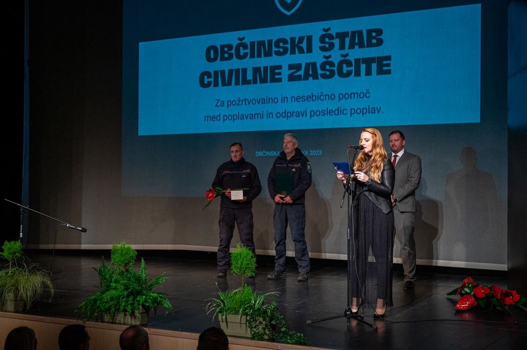 Za požrtvovalno in nesebično pomoč med poplavami in odpravi posledic poplav je OBČINSKI ŠTAB CIVILNE ZAŠČITE MEŽICA prejel zlati grb Občine Mežica.