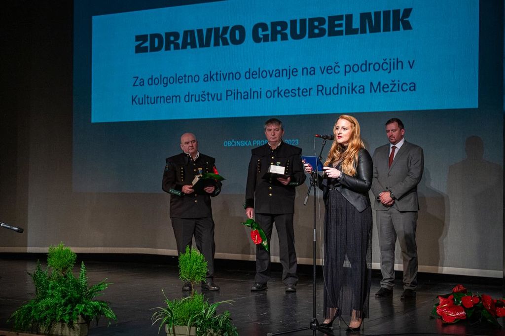 Ob 4. decembru, prazniku Občine Mežica in godu Svete Barbare, zavetnice rudarjev, se je v soboto, 2. decembra, odvila občinska proslava s podelitvijo priznanj. Občina Mežica namreč vsako leto na podlagi odloka podeli priznanja in nagrade najzaslužnejšim, za bistven prispevek k ugledu in razvoju kraja, za pomembne dosežke na različnih področjih življenja. Letos smo podelili tri priznanja Občine Mežica, šest srebrnih grbov, tri zlate in dva najvišja naziva – dobili smo novo častno občanko in novega častnega občana Občine Mežica.