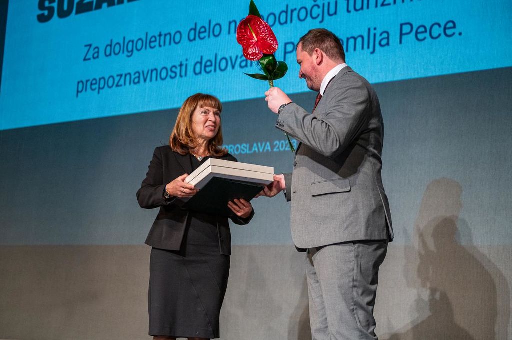 Mag. Suzani Fajmut Štrucl naziv »častna občanka Občine Mežica« podeljujemo zaradi njene resnične predanosti podjetju Podzemlje Pece, d. o. o., za dolgoletno trdo in vztrajno delo na področju turizma z zavidljivimi rezultati ter za njen velik prispevek k ugledu Podzemlja Pece in Občine Mežica.