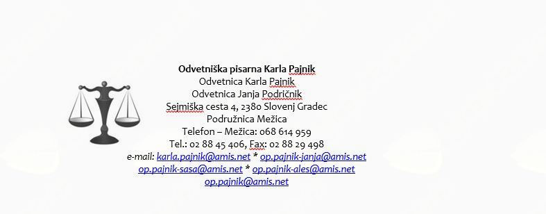 Odvetniška pisarna Karla Pajnik, Podružnica Mežica bo v namen brezplačne pravne pomoči odprta v ponedeljek 19.12.2016 od 9.00 - 15.00 ure.