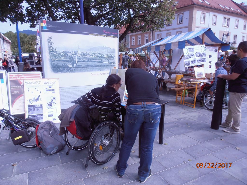 Dobro utečena priprava obeh festivalov in izredno lepo vreme sta bila osnova, da sta letošnji 19. Mirovniški festival in 10. Festival drugačnosti v petek 22.9. v centru mesta tako dobro uspela. Na Bazarju se je predstavilo 40 nevladnih in humanitarnih organizacij, društev, šol ter organizacij, ki skrbijo za invalidne osebe in osebe s posebnimi potrebami. Udeleže sta pozdravila g. župan Andrej Čas in organizator Festivala drugačnosti. Nastopi na odru, delavnice, spremni dogodki obeh festivalov so bili izvedeni pod skupnim naslovom Skupaj za mir: spoštovanje, varnost in dostojanstvo za vse! Zabavno in poučno se je bilo sprehoditi po vseh stojnicah v centru mesta, po atriju graščine in galeriji. Paraplegiki smo predstavljali uporabo invalidskega vozička, košarko na vozičkih, sredstva za mobilnost in psa pomočnika; društvo Slo-Canis šolanje takšnih psov; društvo gluhih je predstavilo osnove znakovnega jezika in pripomočke za boljši sluh; društvo diabetikov je merilo sladkor v krvi; koronarno društvo pritisk; Fakulteta za elektrotehniko je demonstrirala uporabnost robotskega električnega invalidskega vozička, … in izvedli sta se nagradni igri. Poučni del FD-ja na šolah ta dan sta imela Društvo YHD in Zavod Vozim. Drugi še sledijo. MKC je pripravil vrsto zabavnih in poučnih delavnic, … En del prizorišča se pa je bil namenjen evropskemu Tednu mobilnosti. Kulturni program se je prepletal med nastopi šol in invalidskih društev. Od invalidskih društev so nastopile nepogrešljive ljudske pevke Lastovke od slepih harmonikar Benjamin Škrab in kantavtor Aleksander Novak. Letos sta kar na ulici izvaja prikaz risanja z usti tetraplegika ga. Sušanj in g. Vertelj. Društvo paraplegikov Koroške je ob svoji 20 letnici uspešno zaključilo akcijo »Premagajmo ovire« ter slavnostno predalo v uporabo novo prilagojeno vozilo za prevoz paraplegikov. Govore so pri tem imeli predsednik Društva paraplegikov Koroške g. Hovnik, Zveze paraplegikov Slovenije g. Kastelic, župan Slovenj Gradca g. Čas, županja Dravograda ga. Cigala, iz Lions kluba g. Stojanovič in NLB d.d. g. Adam. Tu prisotnim donatorjem se je podelil priložnostna zahvala – izdelek steklarskega mojstra Matijaža Gostenčnika, čemur je sledil še slavnostni prerez traku. V igri trojic v košarki na invalidskih vozičkih med ekipo MOSG in ekipo Društva paraplegikov Koroške, pa ni nobeden ni štel točke. Bilo je bučno, pisano, informativno, živo, … enkratno medgeneracijsko druženje.