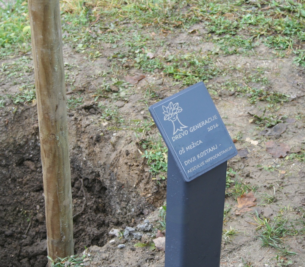 Župan Občine Mežica, Dušan Krebel, Komunala Mežica in prvošolci generacije 2016/2017 smo posadili drevo. Divji kostanj je že tretje generacijsko drevo posajeno ob robu Skate parka Mežica.