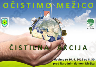 Vse občane Občine Mežica vabimo na čistilno akcijo OČISTIMO MEŽICO 2016, ki bo v soboto, 16. 4. 2016. Zbirališče bo ob 8. 30 pred Narodnim domom Mežica.