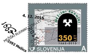 V petek, 4. 12. 2015 je ob obhajanju 350 - LETNICE MEŽIŠKIH RUDNIKOV, goda SV. BARBARE (zavetnice rudarjev) ter PRAZNIKA OBČINE MEŽICA bil na pošti 2392 Mežica v uporabi priložnostni žig.