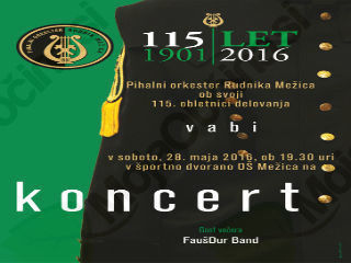 Pihalni orkester Rudnika Mežica ob 115. letnici delovanja vabi na slavnostni koncert, ki bo v soboto, 28. 5. 2016 v športni hali Mežica.