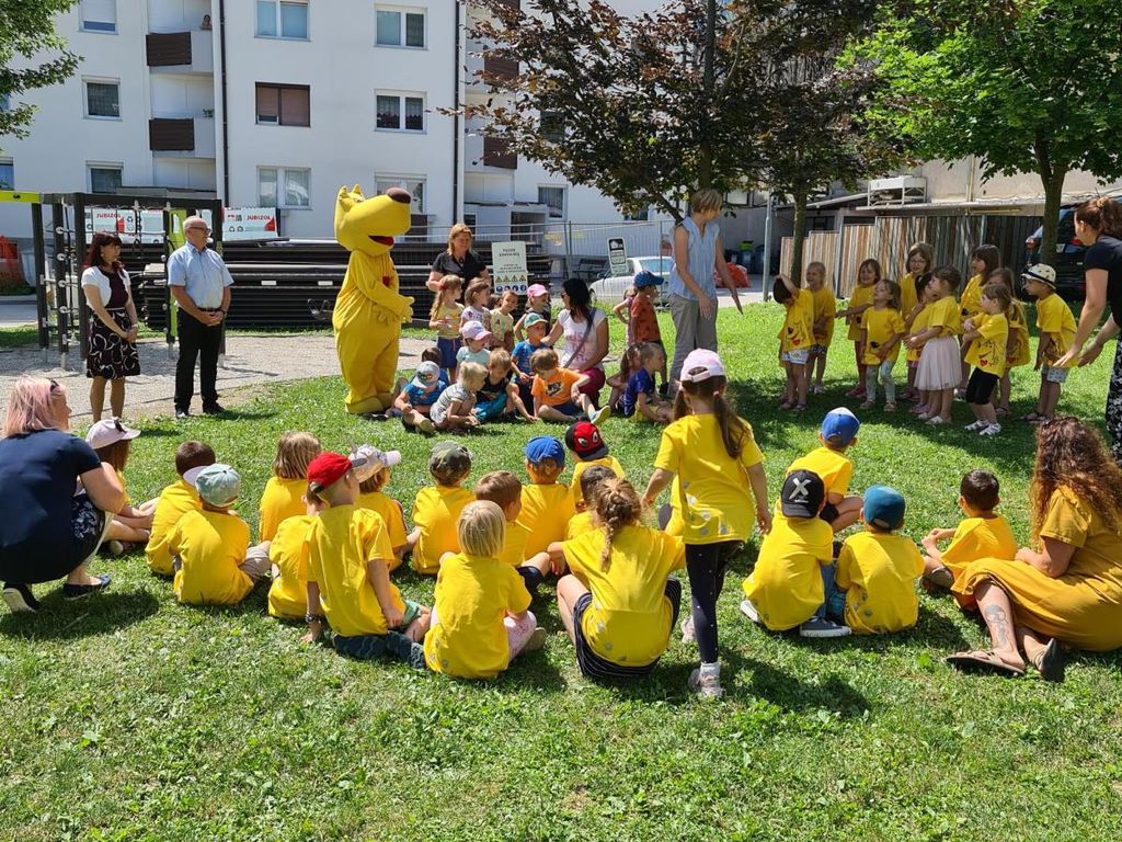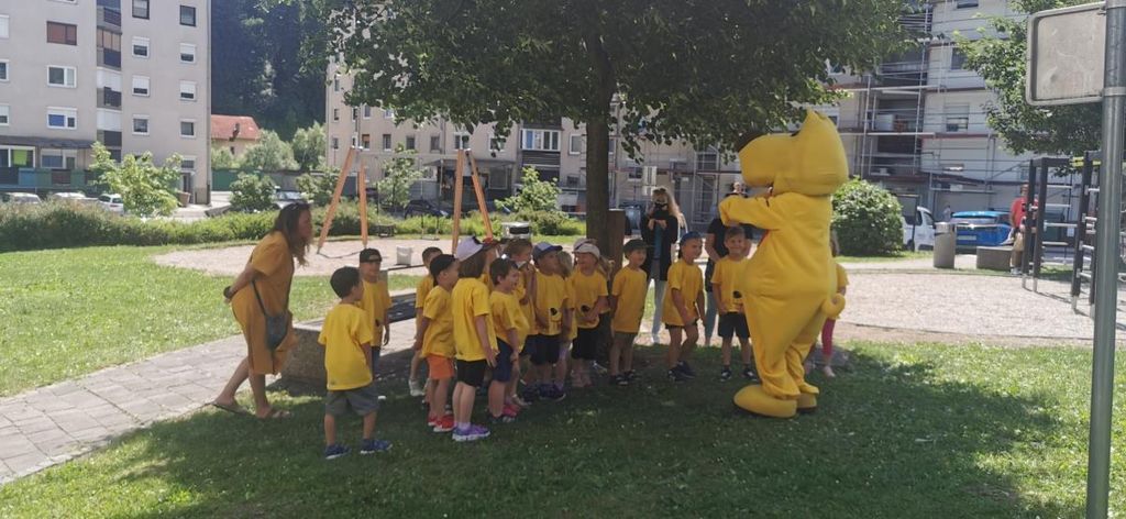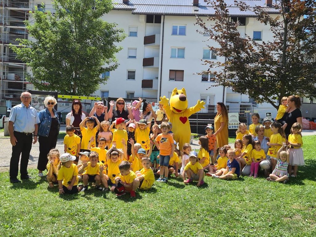 Na prireditvi so sodelovali otroci mežiških vrtcev, Vrtca Mežica in Hiše otrok mali koraki – Montessori ter maskota Zavarovalnice Triglav Kuža Pazi.