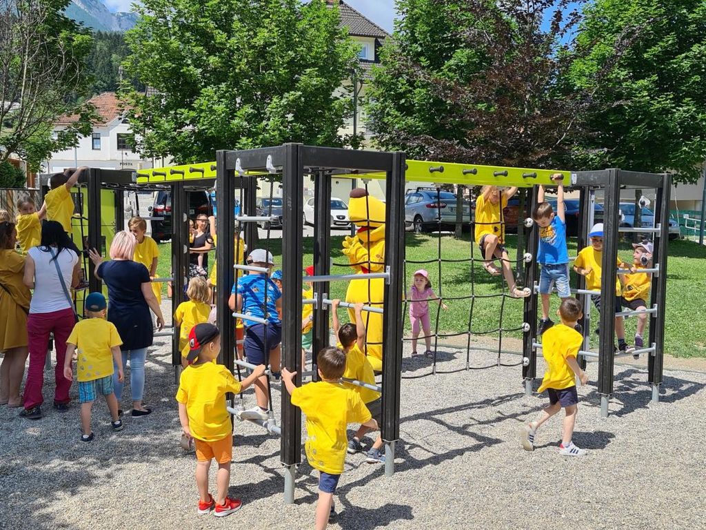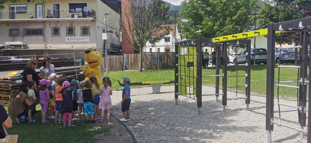 Župan Očine Mežica Dušan Krebel in direktorica območne enote Slovenj Gradec Zavarovalnice Triglav ga. Tonja Vinkl Vončina sta v torek 14. junija 2022 ob 11. uri predala namenu obnovljeno otroško igrišče na Leški cesti.