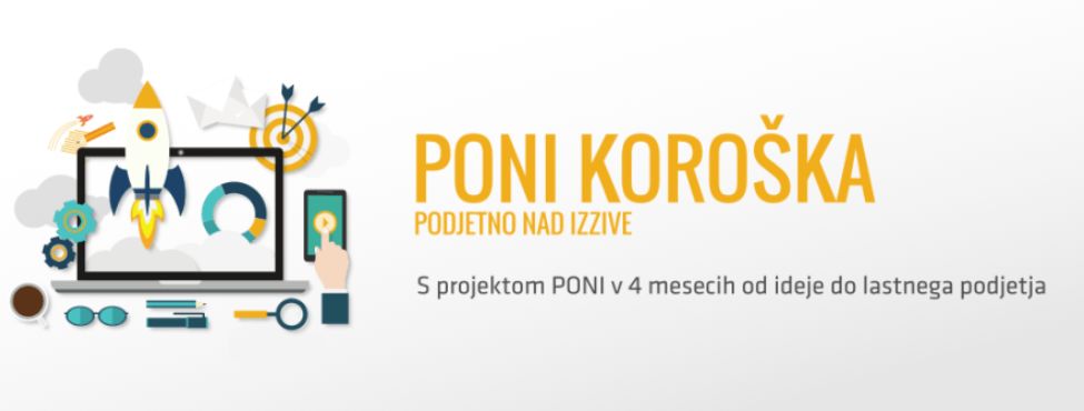 Projekt PONI Koroška je model podjetniškega usposabljanja, v okviru katerega potencialni podjetniki v 4 mesecih razvijejo in realizirajo svojo podjetniško idejo. To se doseže skozi celostni program podjetniških usposabljanj, skozi mentorstvo in nudenje vsestranske pomoči udeležencem pri uresničevanju njihovih poslovnih idej. Posebnost projekta predstavlja zaposlitev udeležencev za čas trajanja programa na RRA Koroška, kar udeležencem omogoča ne le finančno podporo pri razvoju njihovih poslovnih idej, ampak tudi čas, ki ga lahko udeleženci namenijo izključno pridobivanju novih znanj, izkušenj in pripravi na vstop na samostojno podjetniško pot.