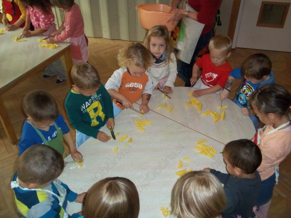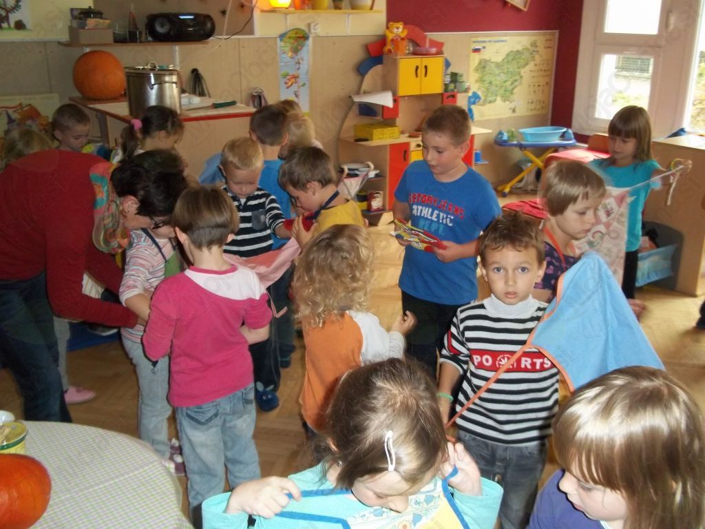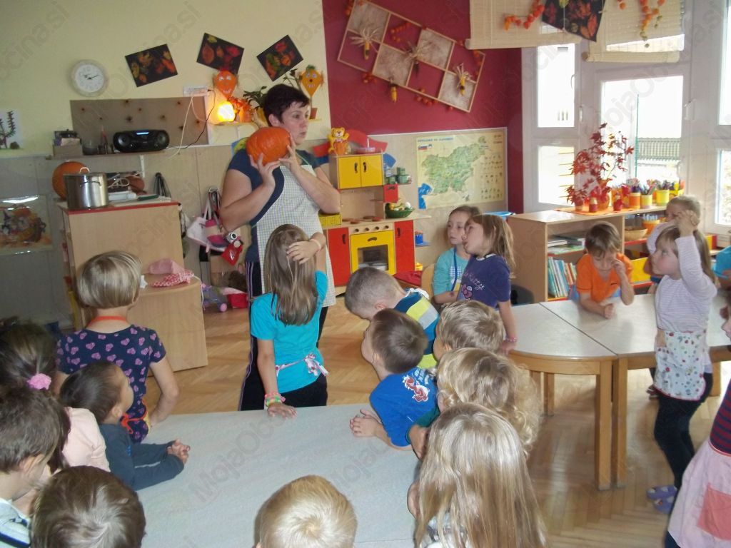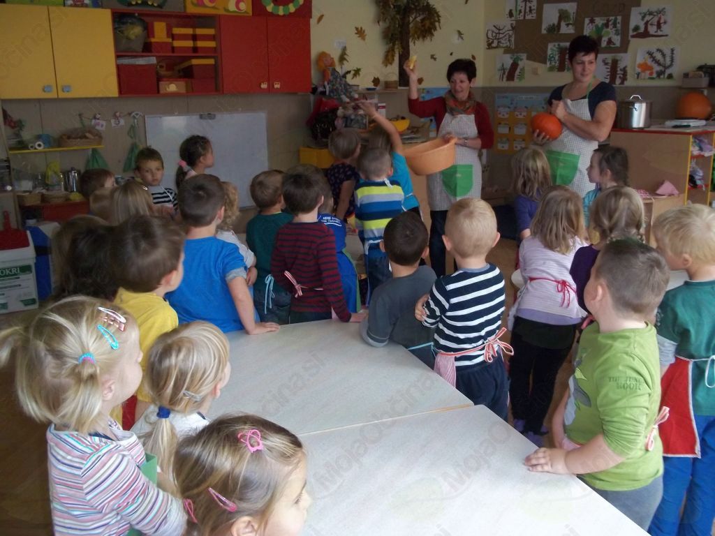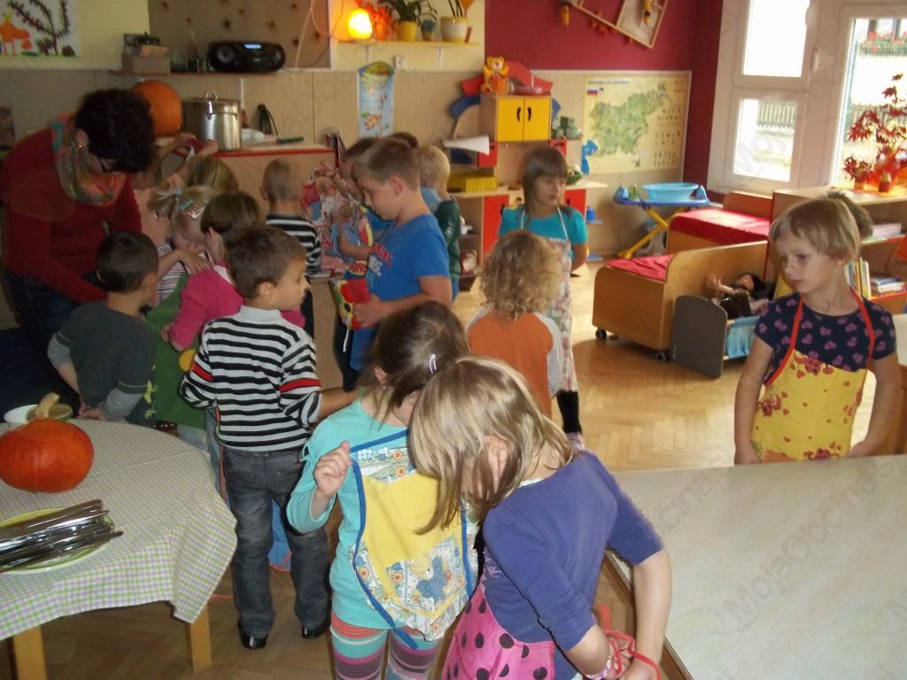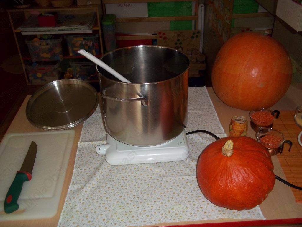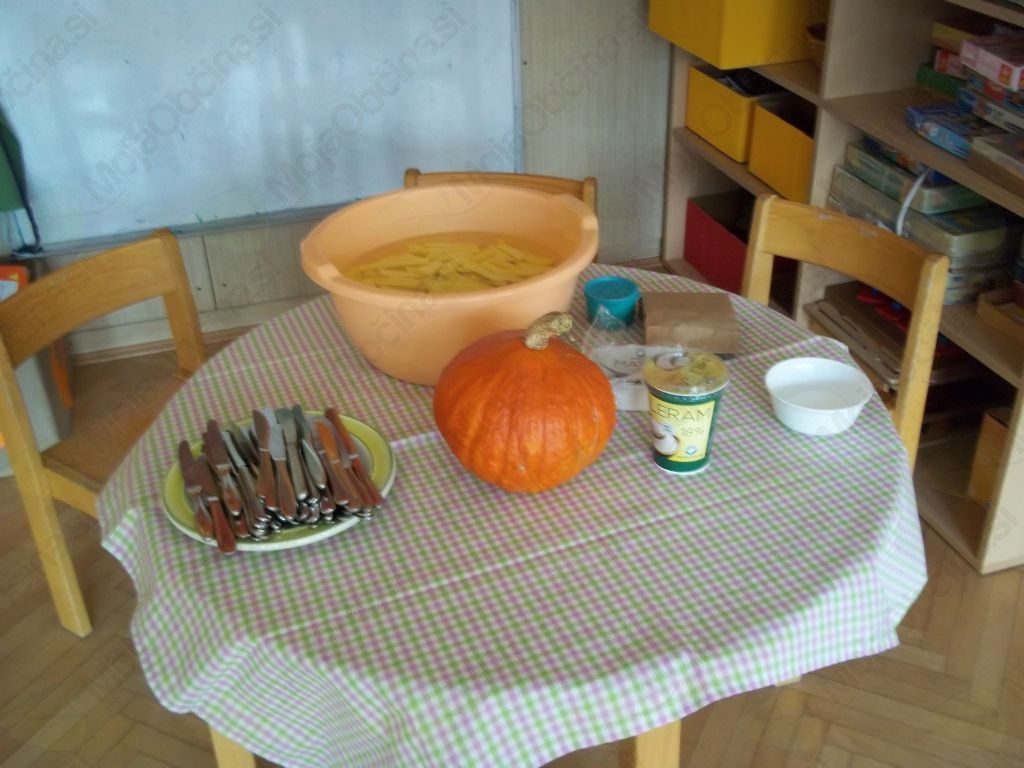 Ugotovili smo, da potrebujemo bučo, krompir, vodo, sol, malo masla, kuhalnico, nože, predpasnike, velik lonec in štedilnik.