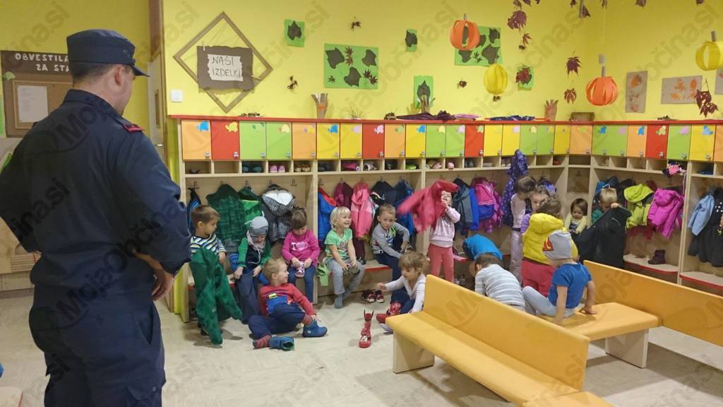 Skupaj smo izvedli evakuacijsko vajo in mu pokazali, kako hitro se znamo tudi sami obleči in obuti. Blaž je bil zelo zadovoljen, mi pa veseli, da nas je obiskal v vrtcu.