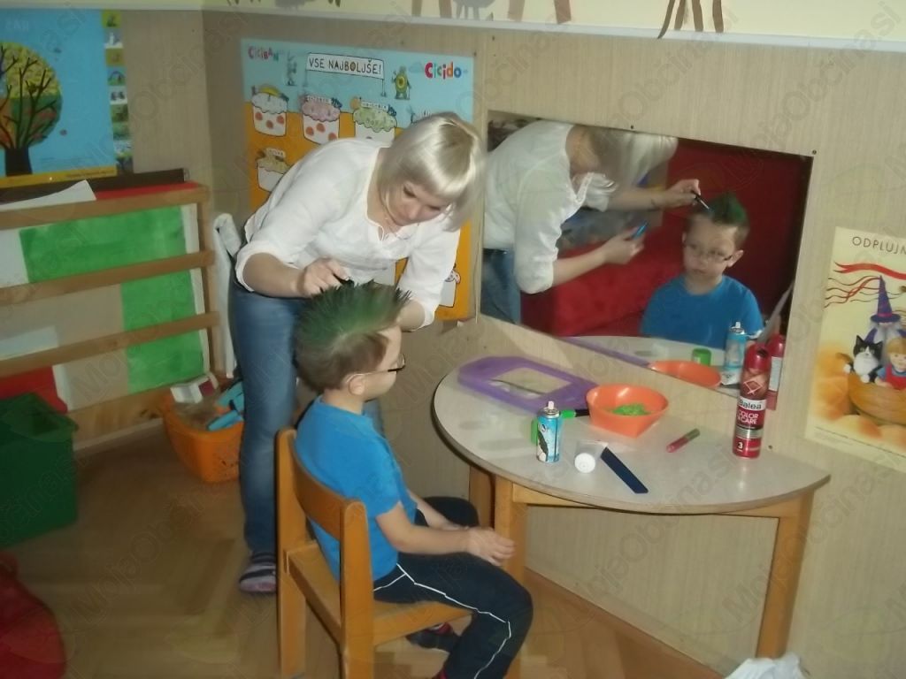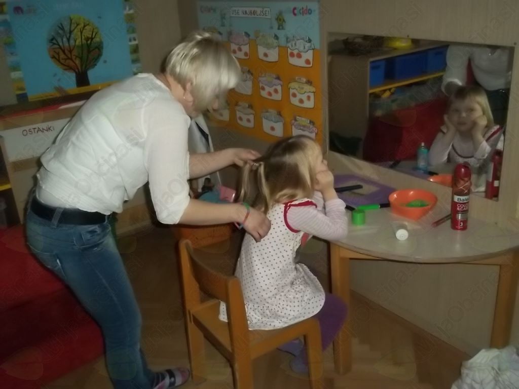 Bližal se je najbolj norčavi dan v letu, zato smo ves teden ustvarjali, si izdelovali maske, očala, spremeniti pa je bilo treba tudi frizuro. Ob tej priložnosti smo povabili naši mamici frizerki, da nas seznanita s svojim poklicem.