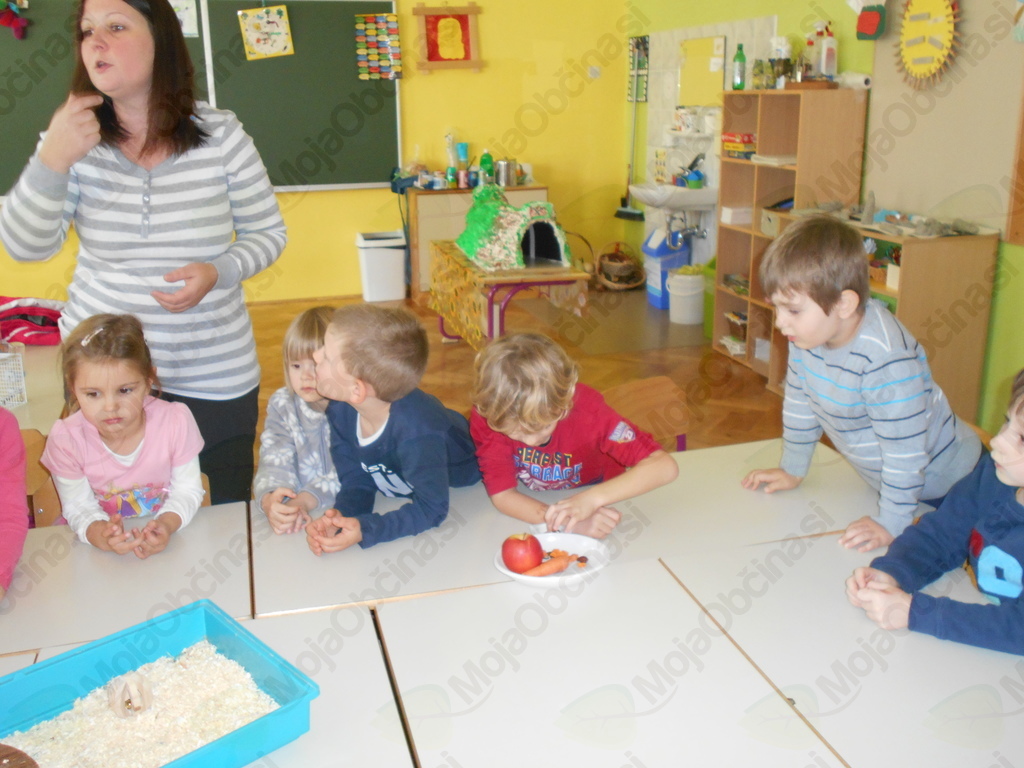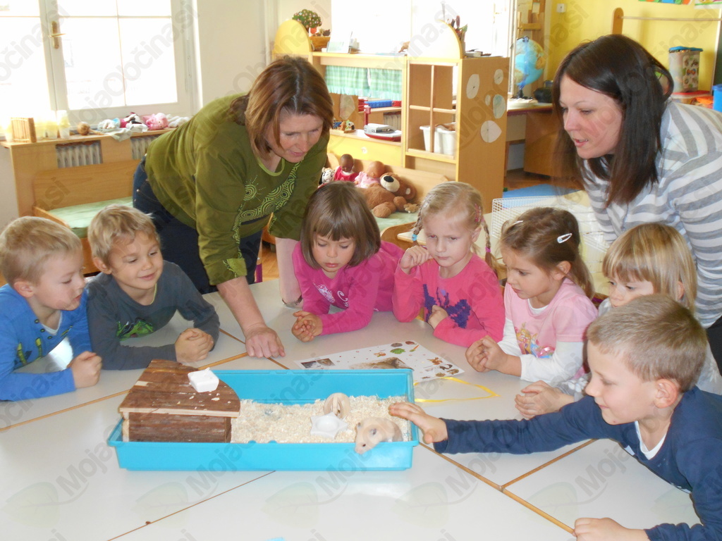 Otroci obožujejo živali. »Jaz bi imel dinozavra, jaz pa psa, jaz pa leva,…«, smo slišali, ko nam je Nel ponosno povedal, da nas bo v igralnici obiskal njegov hrček. Z mamo sta pripravila pravo malo šolo glodavcev in hrčka smo tipali, opazovali, spoznavali njegove značilnosti ter se naučili, kdo so njegovi sorodniki.