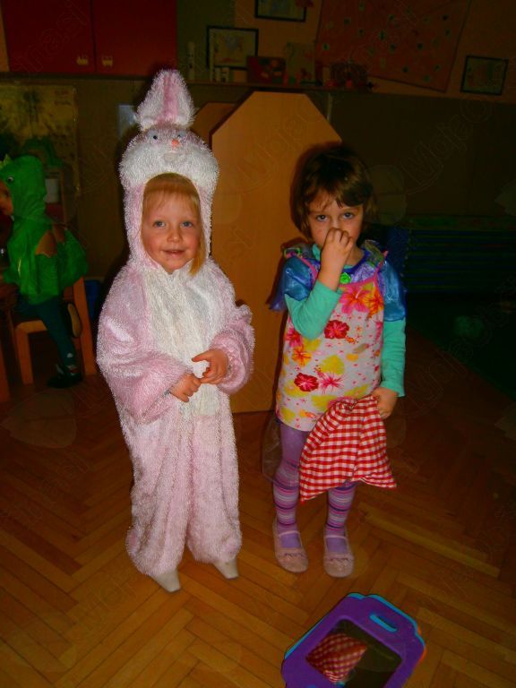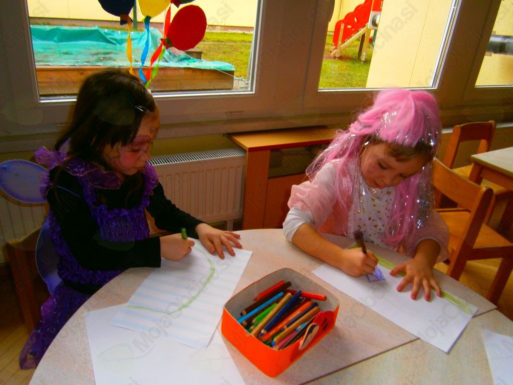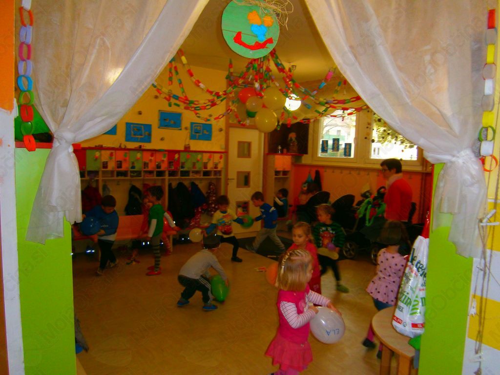 Tudi v naši igralnici je bilo veselo. Aktivno smo se pripravljali na najbolj norčavi dan v letu, krasili igralnice, si izdelovali maske ter »rajali« po hodnikih. Pogovarjali smo se o pustnih običajih, pustnih jedeh, najbolj znanih slovenskih pustnih maskah-kurentih ter pustnih oblačilih.