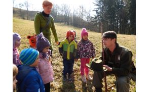 Biti lovec je zagotovo nekaj posebnega. V skupini imamo fantka, katerega stric je lovec, ki se je še posebej potrudil za nas in nam približal svoje delo. Najprej smo spoznali lovčeva oblačila, razmišljali zakaj so zelene barve, ugotavljali pomen preže, spoznali značilnosti palice, ki je na eni strani zaostrena, na drugi pa ne ter si z daljnogledom približali predmete in okolico. Nato smo si ogledali krmišče, spoznali njegov namen ter ugotavljali razliko med jelenom in srnjakom. Še posebej smo uživali ob iskanju srnjakovih rogov. V živo smo si ogledali puško in preizkusili njeno težo. Seveda pa je bila še posebej dobrodošla malica iz lovčevega nahrbtnika. Zahvaljujemo se Primožu za njegov čas in izvirnost.