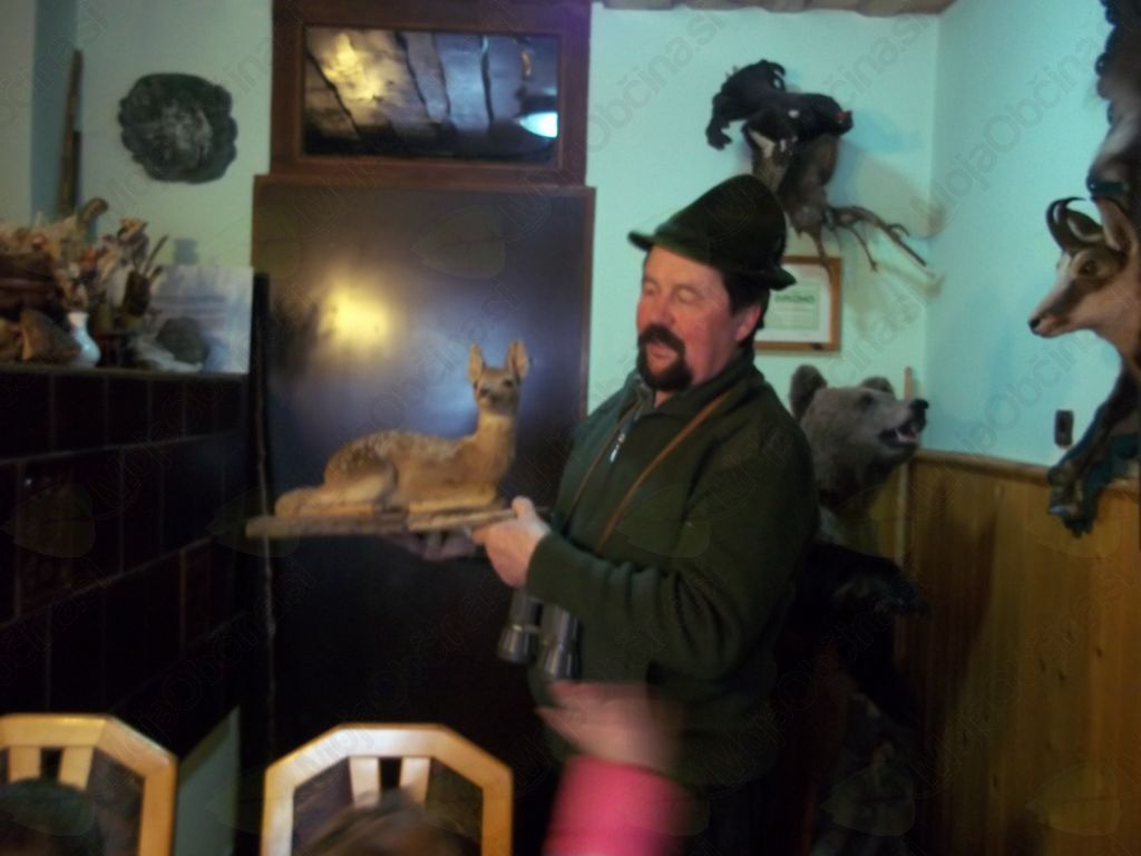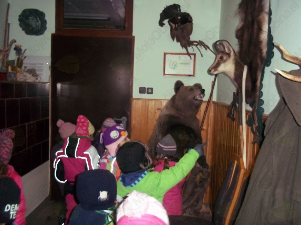 Ko smo vsak kotiček jase pregledali, smo se odpravili proti kmetiji Kajžar. Gospod Gusti nam je prijazno odprl vrata lovske sobane, kjer ima shranjene svoje trofeje. Vsako je nadzorno pokazal in opisal, medtem pa smo mi pozorno poslušali in mu občasno postavili vprašanje.
