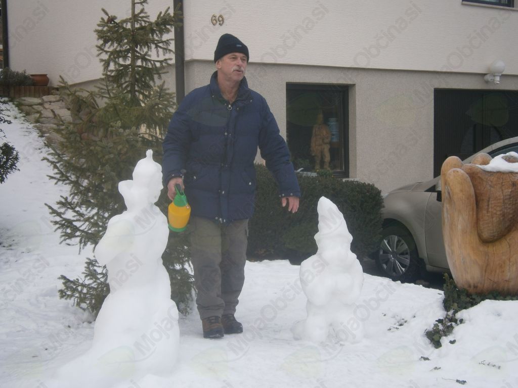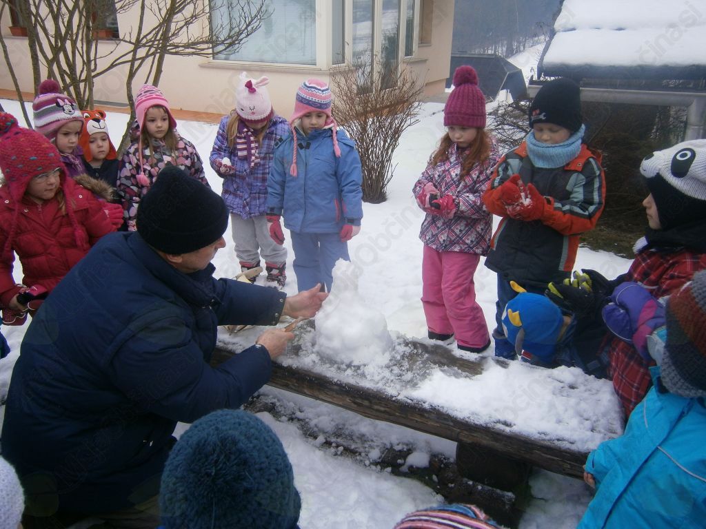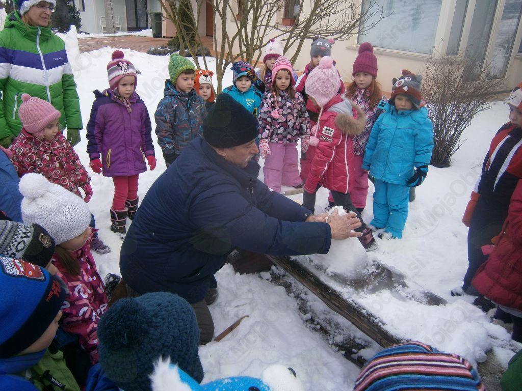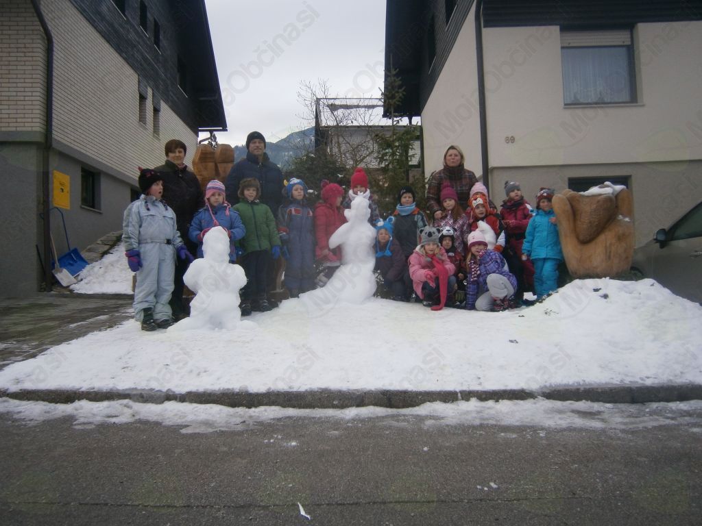 Pa smo šli. Hodili smo po tako želenem snegu in iskali Deželo Sneguljčice ter med potjo prisluhnili tudi ptičkom. Navdušenje ob pogledu na sneženo Sneguljčico, na sedem različnih palčkov, vsakega s svojo zgodbo, je bilo nepopisno. Ogledovali smo si ledene skulpture in zelo uživali. Naš prijatelj pa je zaključil: »Saj to je pa Ledena dežela Sneguljčice in sedmih palčkov!« V deželo smo povabili tudi prijatelje vzgojiteljic: Štefke, Mateje, Marjetke in Eve in imeli posebno čast, da smo lahko pozdravili umetnika Janeza Graufa, ki je deželo ustvaril. Izpod njegovih spretnih prstov je v nekaj minutah nastal pravi mali škratek. Navdušil nas je nad kiparjenjem s snegom in vsi zelo močno upamo, da nas bo narava obdarila s snegom, da bomo z ustvarjanjem nadaljevali tudi na vrtčevskem dvorišču.