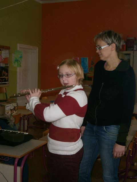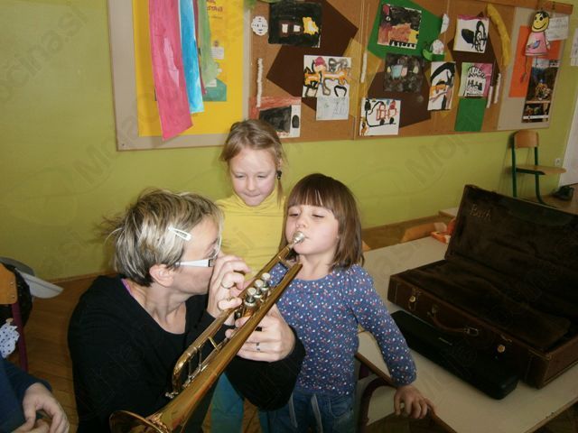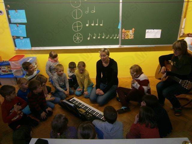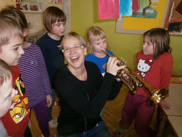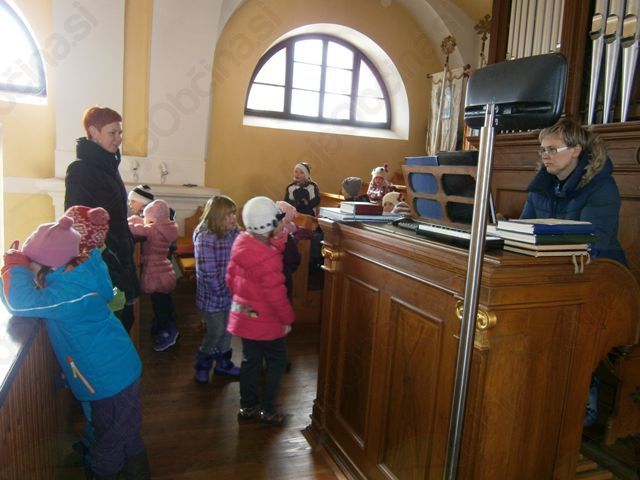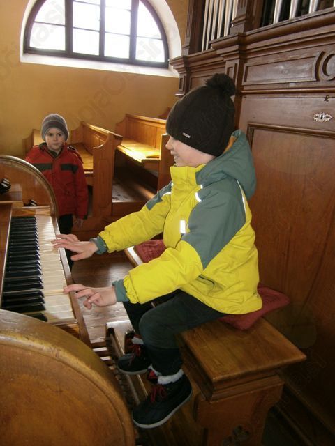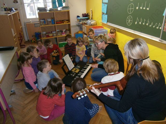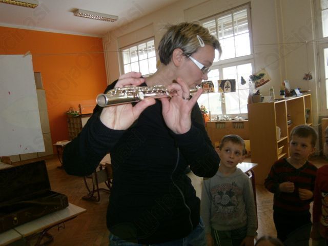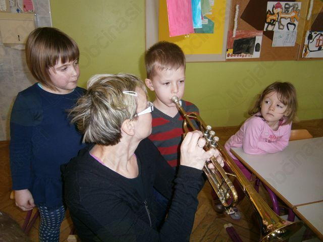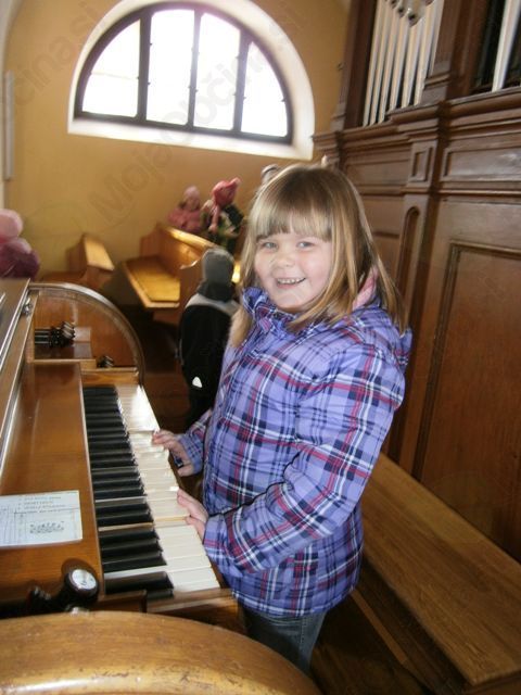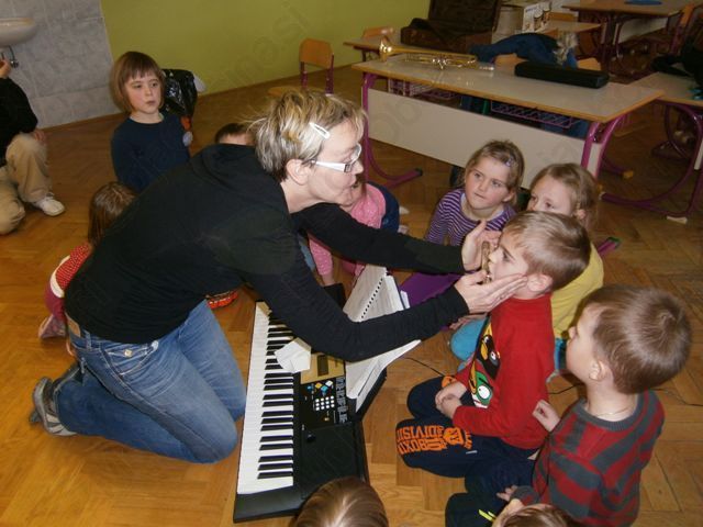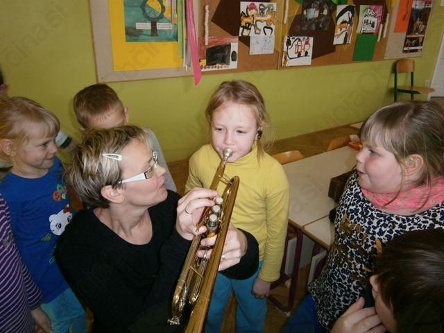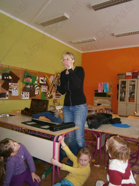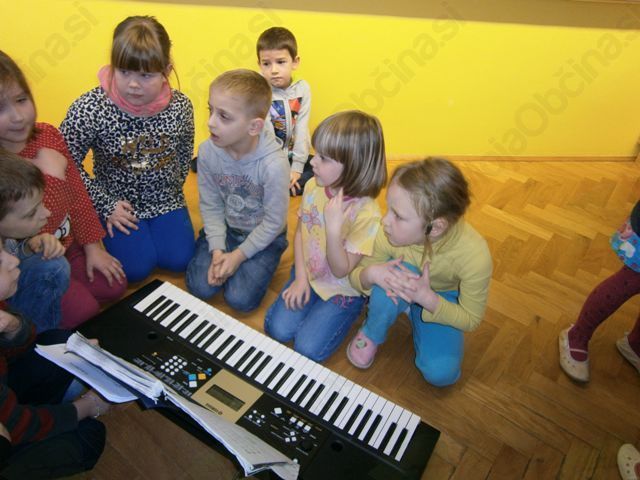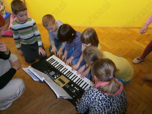Pa smo zopet imeli srečo, saj se je na naše povabilo z veseljem odzvala umetnica Špela M. Mori, ki nam je pomagala raziskovati glasbeno področje. Z njeno pomočjo smo spoznali, da ravno tako kot mi tudi instrumenti izhajajo iz družin, da igranje oz. pihanje ali trobljenje na instrumente ni enostavno, da za lažje igranje potrebujemo notne zapise, da so note različno dolge, da imajo svoja imena, da lahko igramo glasno ali tiho, da lahko pojemo visoko ali nizko. Ob tem smo bogatili besedni zaklad ter utrjevali štetje. Ravno tako smo zelo uživali ob ogrevanju glasilk. Vrhunec smo doživeli ob spoznavanju največjega instrumenta – orgel, kjer smo pokukali v notranjost, pihali na piščal, se preizkusili v igranju tako s prsti kot nogami in skupaj zapeli v zelo posebnem, kateremu otroku tudi neznanem prostoru. Dejavnost bomo še nadgradili s spoznavanjem instrumentov v glasbenem domu.