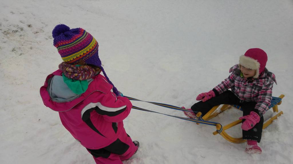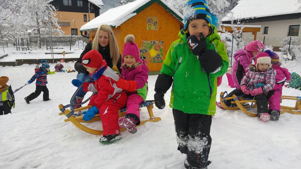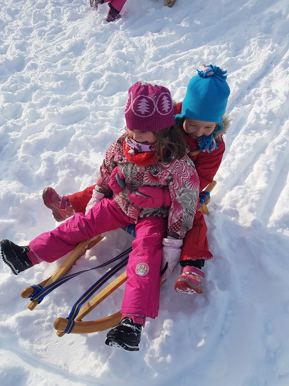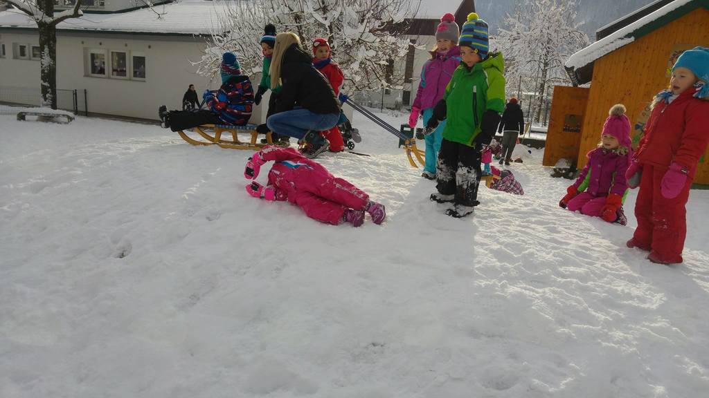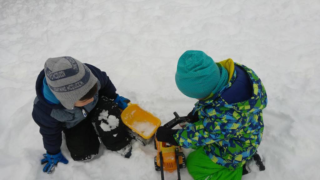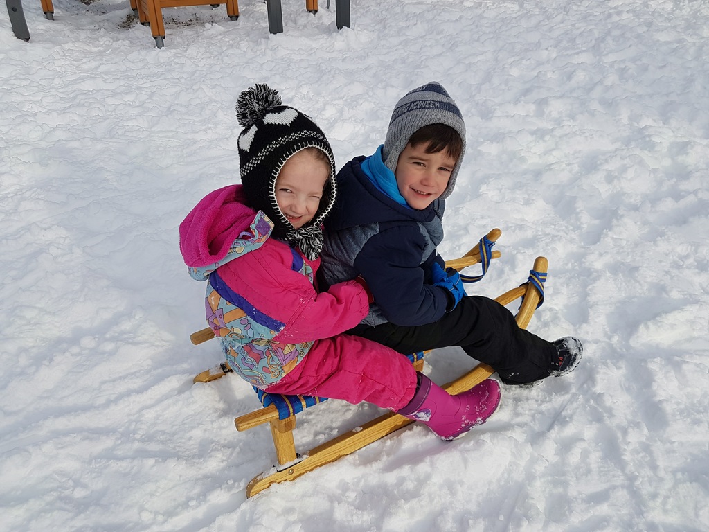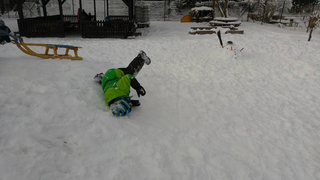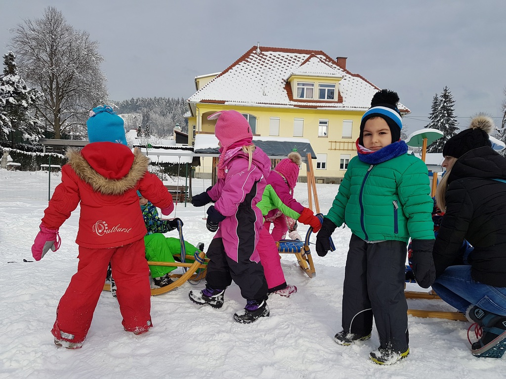 Na našem igrišču je pravo zimsko vzdušje. Po hribčku drvimo s sanmi, delamo snežake, se valjamo po snegu in tudi kepamo. Skratka uživamo!!!