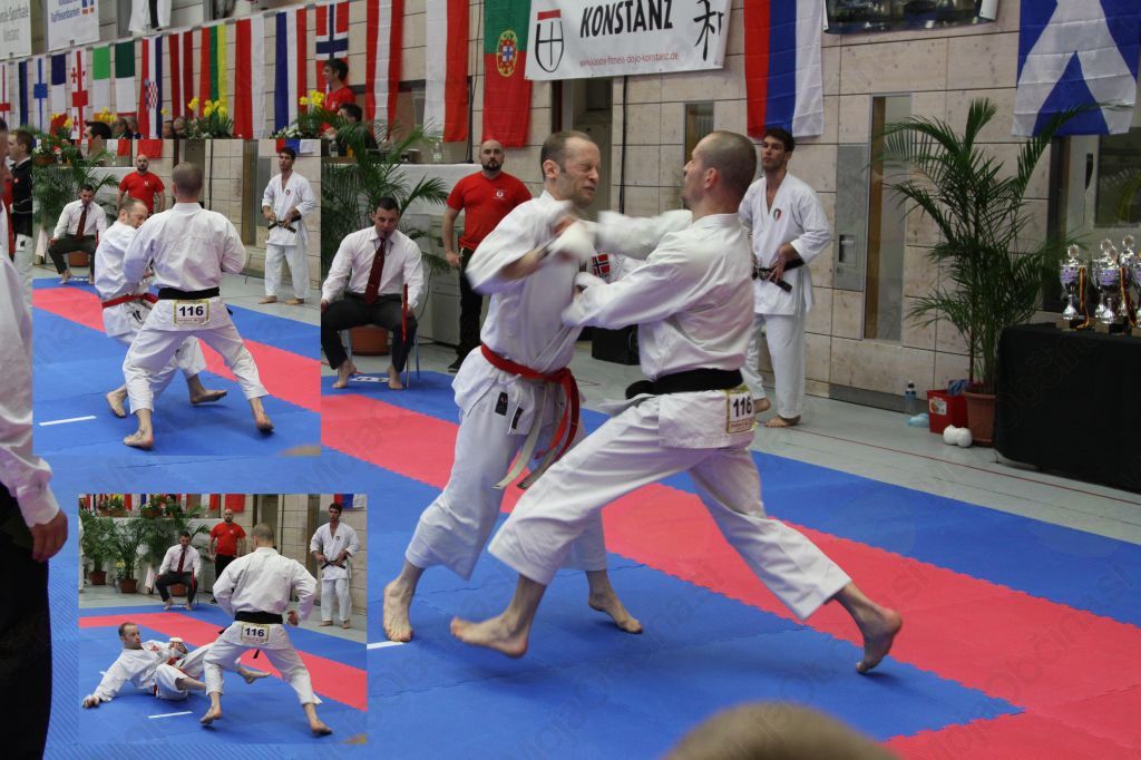 Člani kumite (Goran Milovanovič, Florjan Reiter in Tilen Zupan). Nastopilo je 62 tekmovalcev. Goran Milovanovič je v prvem krogu premagal norvežana Sjur Rondesetveita, v drugem poljaka Marcina Kosmalskega, v tretjem pa je po podalšku moral priznati premoč tekmovalcu Karimu Agrebiju iz Monaka. S tem se je uvrstil med 16 najboljših tekovalcev. Florjan Reiter je v prvem krogu po drugem podaljšku z wazari-jem izgubil proti norvežanu Kennethu Sundvoru.Tilen Zupan pa je bil poražen od Lukasa Frydeckya iz Češke Republike. Zmagal je belgijec Arnaud Vicaire.V ekipnem kumite nastopu so slovenski reprezentantje izgubili proti reprezentanci Švedske z minimalnih 1:0. Zmagal je reprezentanca Belgije.