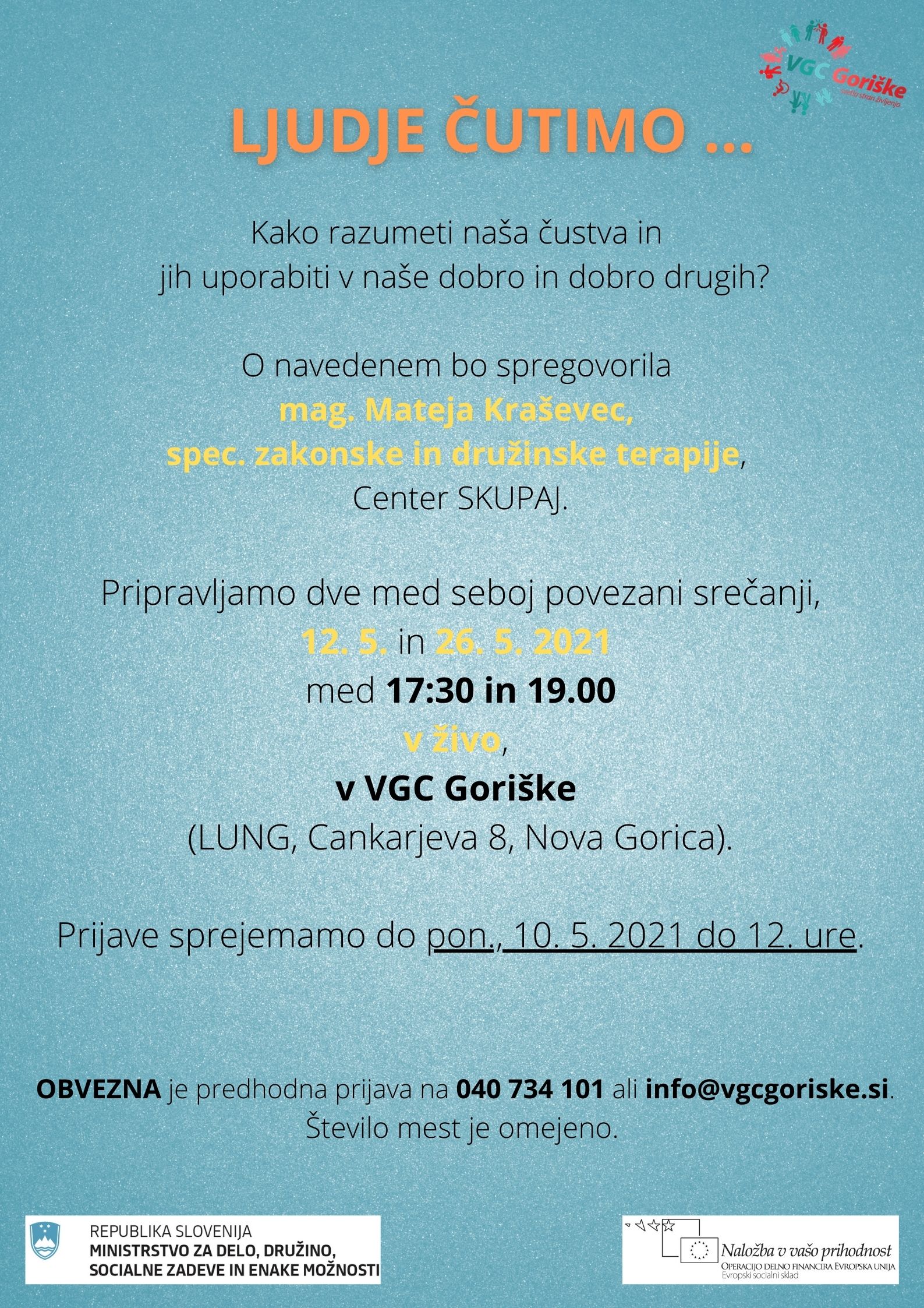OBVEZNA je predhodna prijava na 040 734 101 ali info@vgcgoriske.si.
