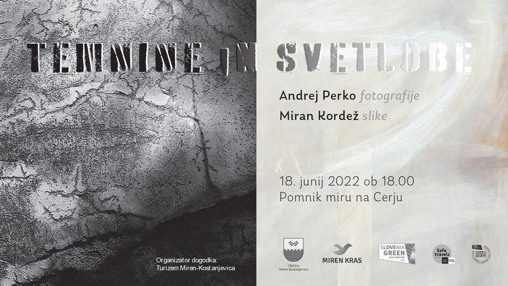 Prisrčno vabljeni na otvoritev nove razstave: Temnine in svetlobe, Andreja Perka (fotografije) in Mirana Kordeža (slike), v soboto 18. junija ob 18. uri v slavnostno avlo Pomnika miru na Cerju.