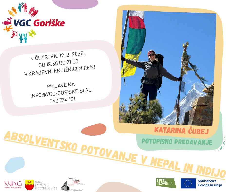 V mesecu februarju bo v Krajevni knjižnici v Miren potekalo potopisno predavanje "Absolventsko potovanje v Nepal in Indijo" v okviru Večgeneracijskega centra Goriške.