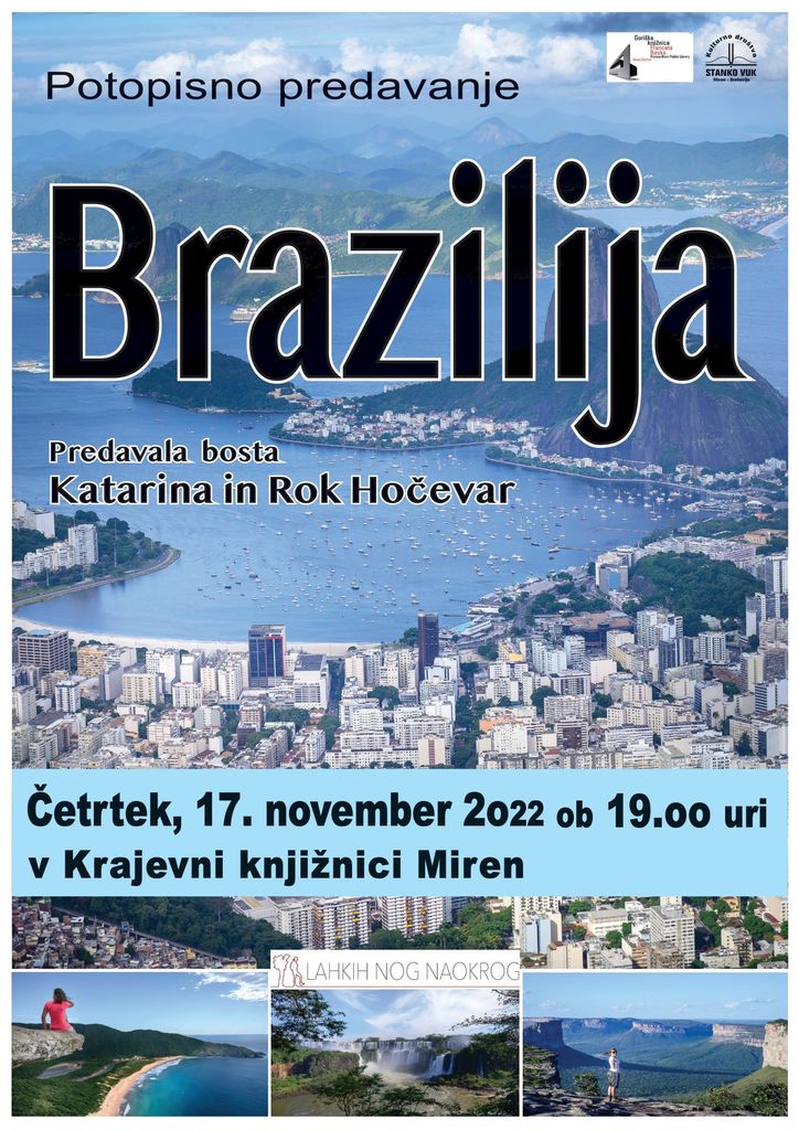 KD Stanko Vuk vabi na potopisno predavanje BRAZILIJA, ki bo v četrtek, 17. novembra 2022, ob 19.00 uri v Krajevni knjižnici Miren.