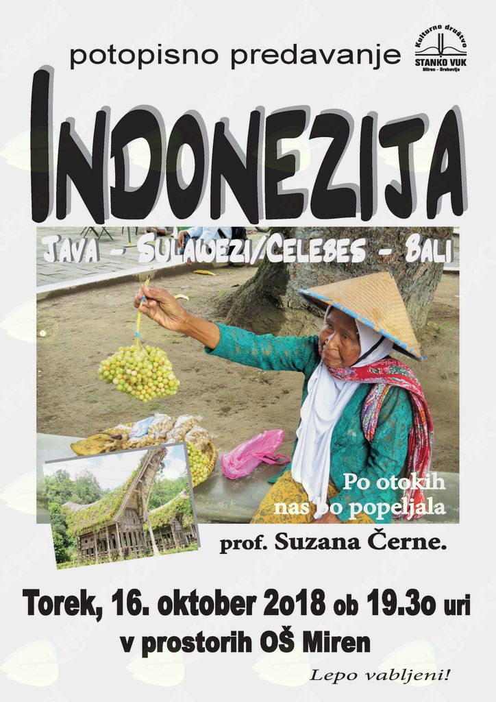 KD stanko Vuk Miren - Orehovlje vabi na potopisno predavanje INDONEZIJA. V torek, 16. oktobra ob 19.30 uri v OŠ Miren odpotujemo v družbi Suzane Černe. Lepo vabljeni!