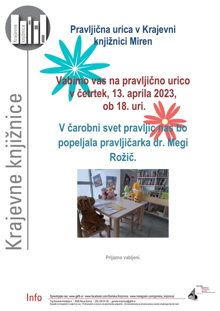 na PRAVLJIČNO URICO, ki bo v četrtek, 13. aprila 2023 ob 18.00 uri v Krajevni knjižnici Miren.