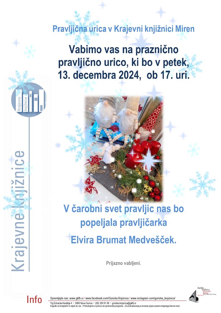 V petek, 13. december 2024 ob 17.00h pridite v Krajevno knjižnico Miren.