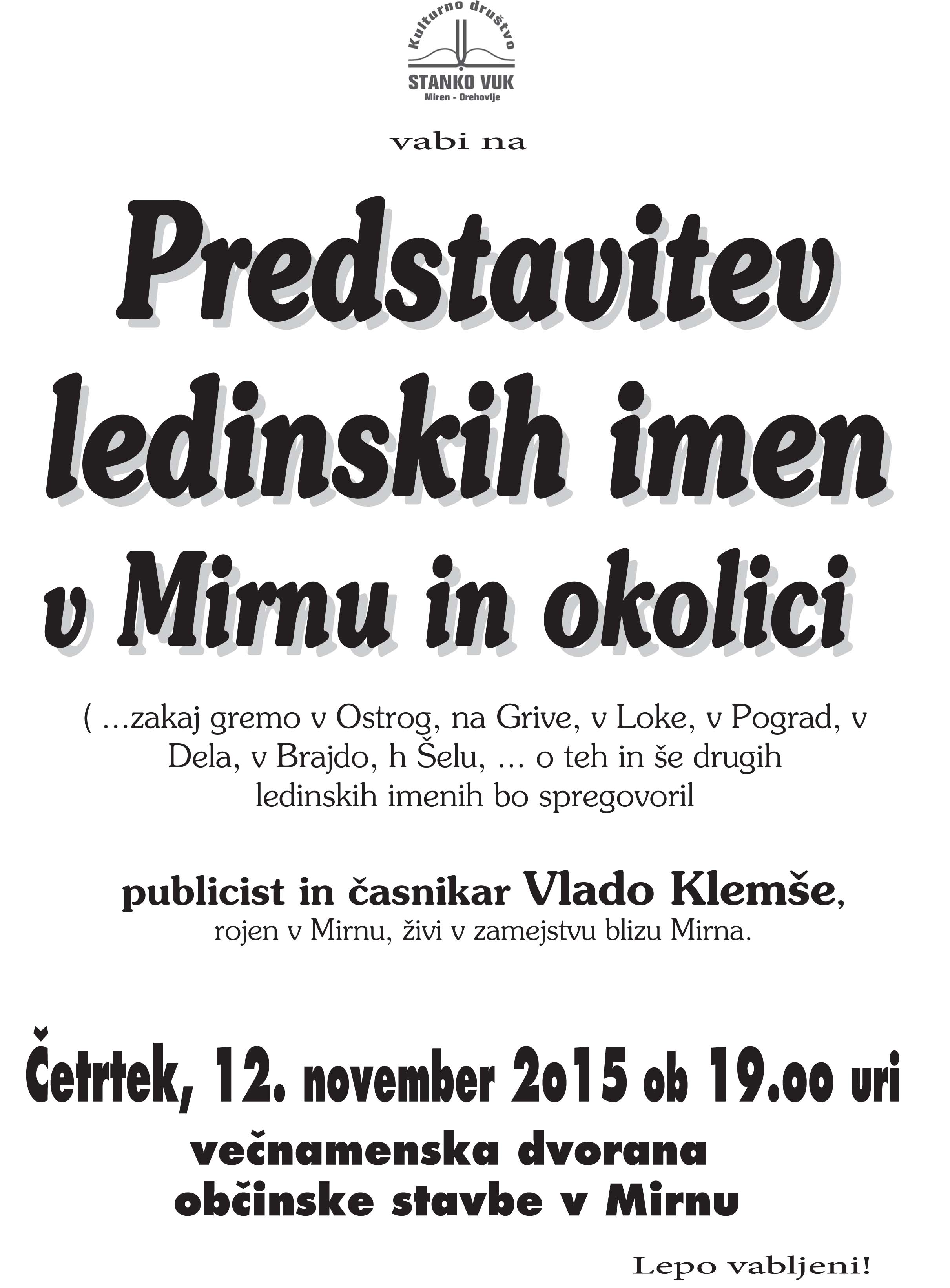 Predstavitev ledinskih imen v Mirnu in okolici