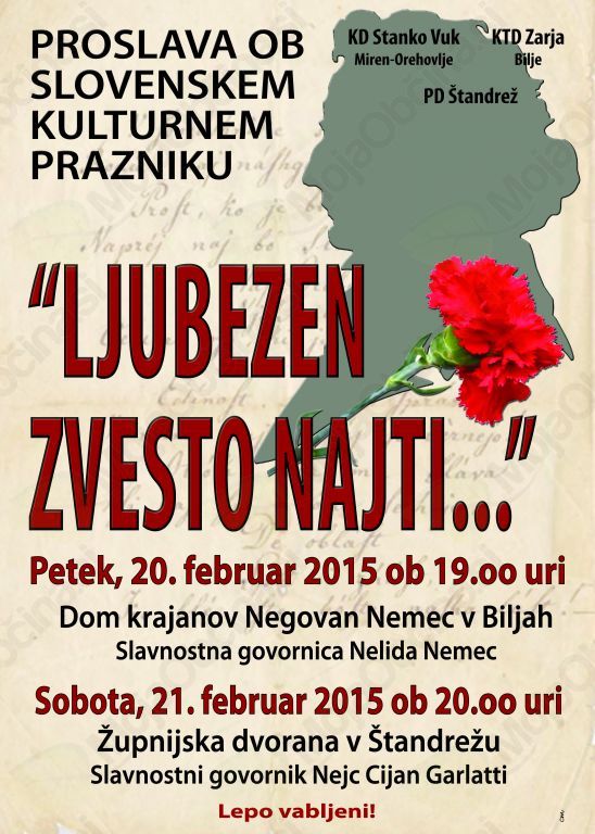 ki bo v petek, 20. februarja ob 19.00 uri v domu krajanov Negovan Nemec v Biljah.