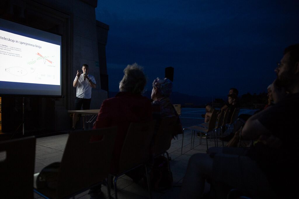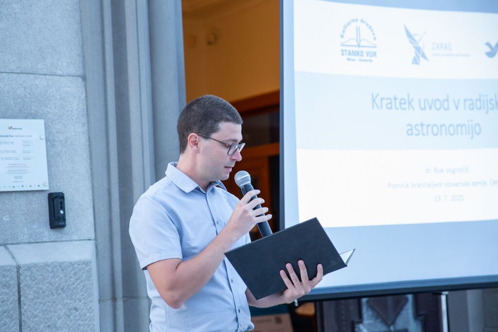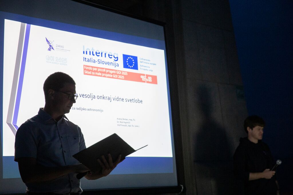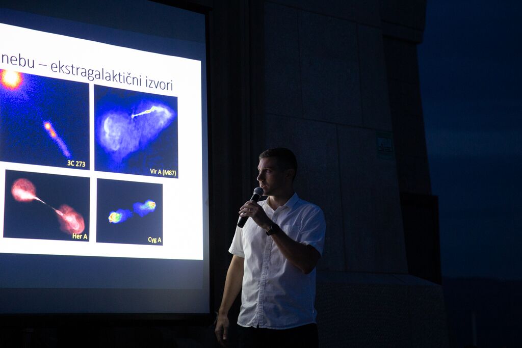 Letos smo gostili dva mlada astronoma, Roka Vogrinčiča in Vida Primožiča, s katerima že vrsto let vodimo projekt gradnje radijskega teleskopa v naši občini. Dogodek je predstavljal uvod v jesensko slavnostno odprtje radijskega teleskopa.