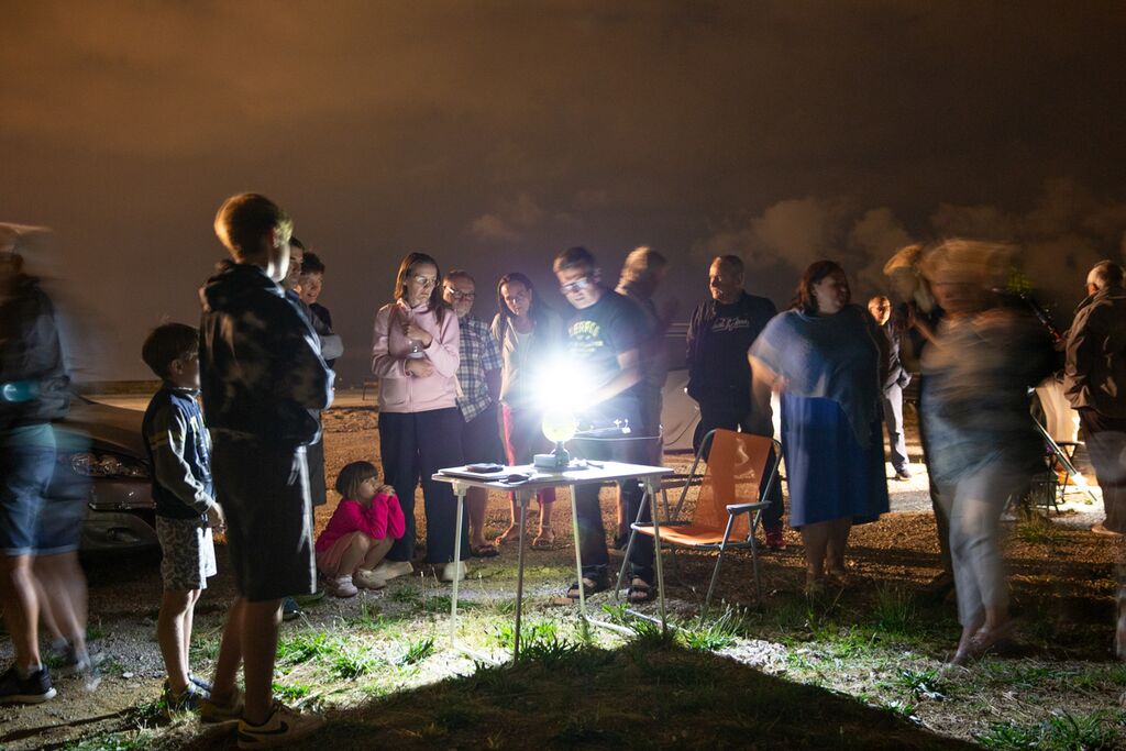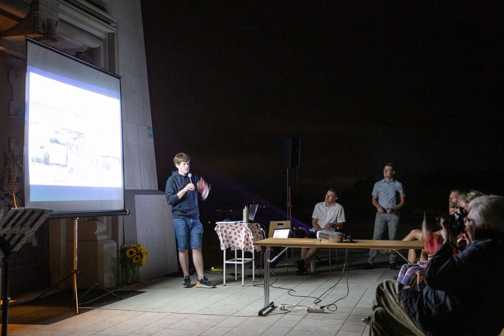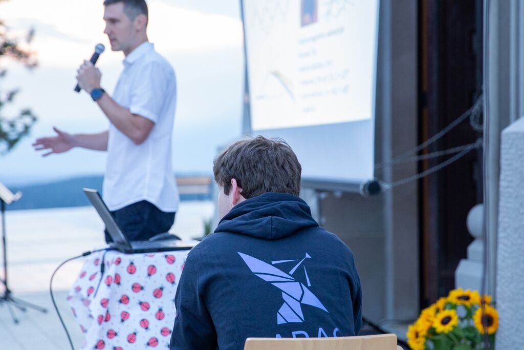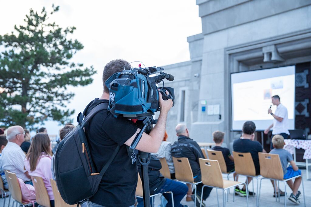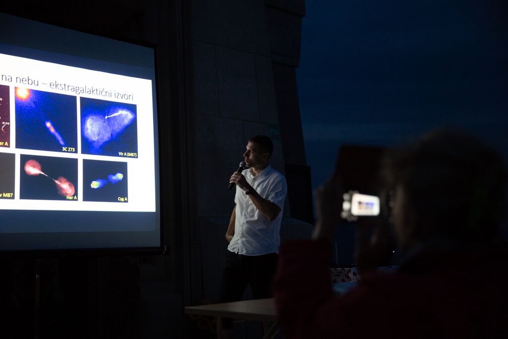 Letos smo gostili dva mlada astronoma, Roka Vogrinčiča in Vida Primožiča, s katerima že vrsto let vodimo projekt gradnje radijskega teleskopa v naši občini. Dogodek je predstavljal uvod v jesensko slavnostno odprtje radijskega teleskopa.