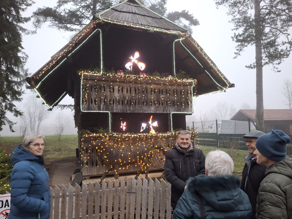Na pot smo se odpravili v torek, 16. decembra v popoldanskih urah. Naša prva postaja je bila na Trojanah, kjer smo se posladkali in podprli s krofi. V Mozirskem gaju nas je sprejela predsednica DU iz pobratene občine Nazarje, gospa Marija Turk s spremstvom. Skupaj smo si ogledali Božično bajko, po kateri Mozirski gaj tudi slovi.