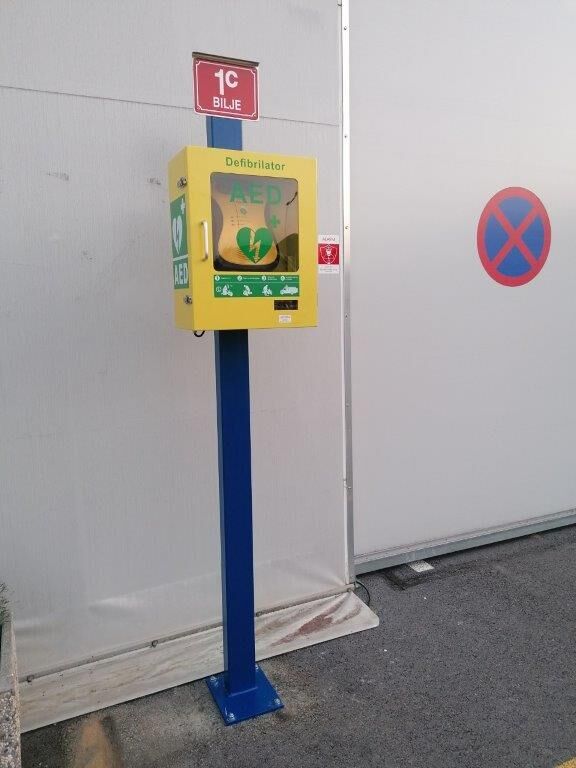 Napravo je s pomočjo donatorskih sredstev prispevalo Društvo AED v okviru projekta AED v vsako občino. Prizadevajo si, da bi vsakdo na območju Slovenije ob srčnem zastoju pravočasno prejel ustrezno pomoč z uporabo AED. Z namenom večje dostopnosti teh življenjsko pomembnih naprav društvo zbira sredstva za njihov nakup, vzdrževanje ter ozaveščanje javnosti o pomembnosti hitrega ukrepanja v primeru srčnega zastoja.