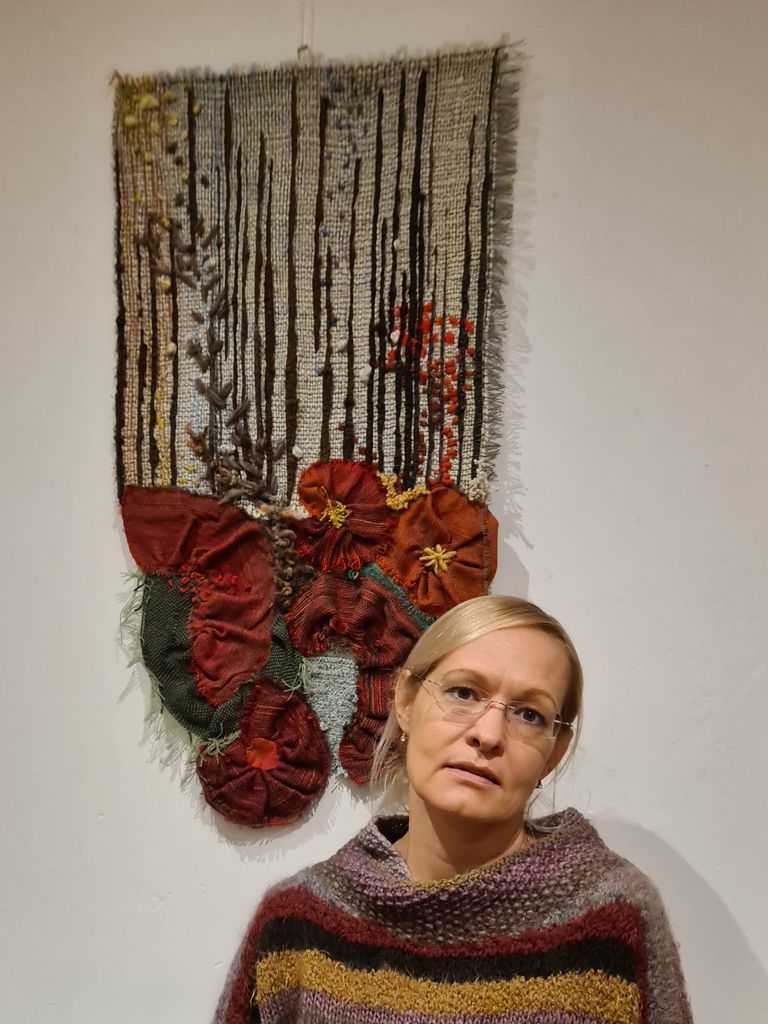spremljala po požaru preteklega leta vse naokrog domače vasi. Cikel tkanih slik