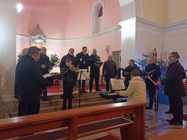 Po praznični maši, ki jo je daroval domači župnik g. Robert Ušaj, se nam je z božičnim koncertom predstavila Vokalna skupina Chorus´97 iz Mirna, ki deluje pod umetniškim vodstvom Vladimirja Čadeža ob pomoči korepetitorke Ane Zalar, z gosti – mlado sopranistko Ivano Jug iz zamejske Peči in mladim trobentačem Filipom Siličem iz Orehovelj. Na klaviaturi je program spremljala Damjana Čevdek Jug.