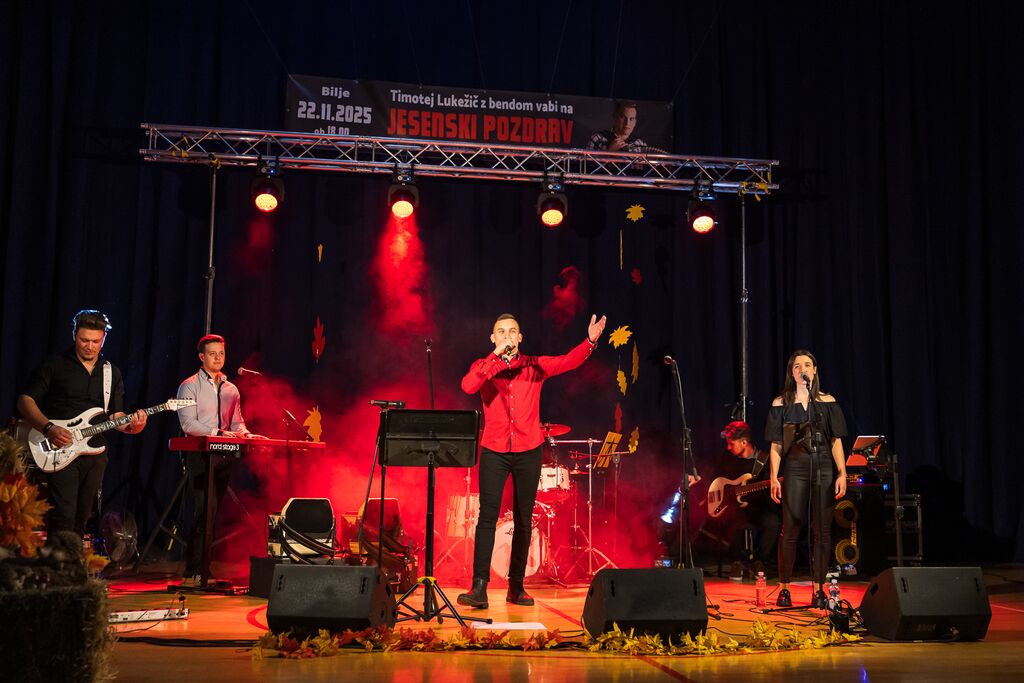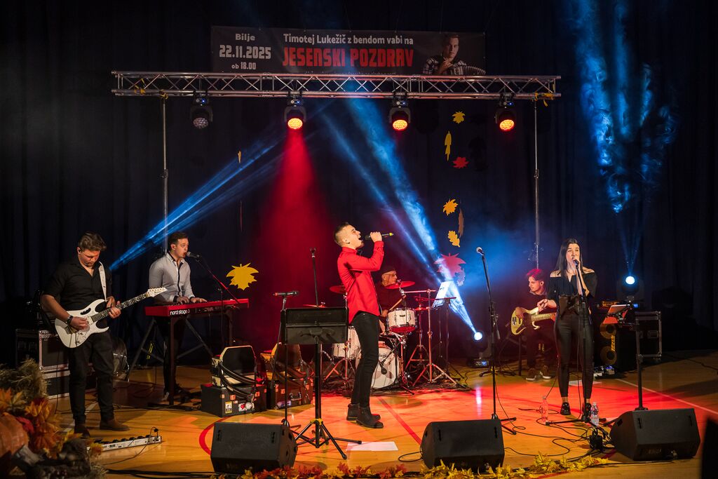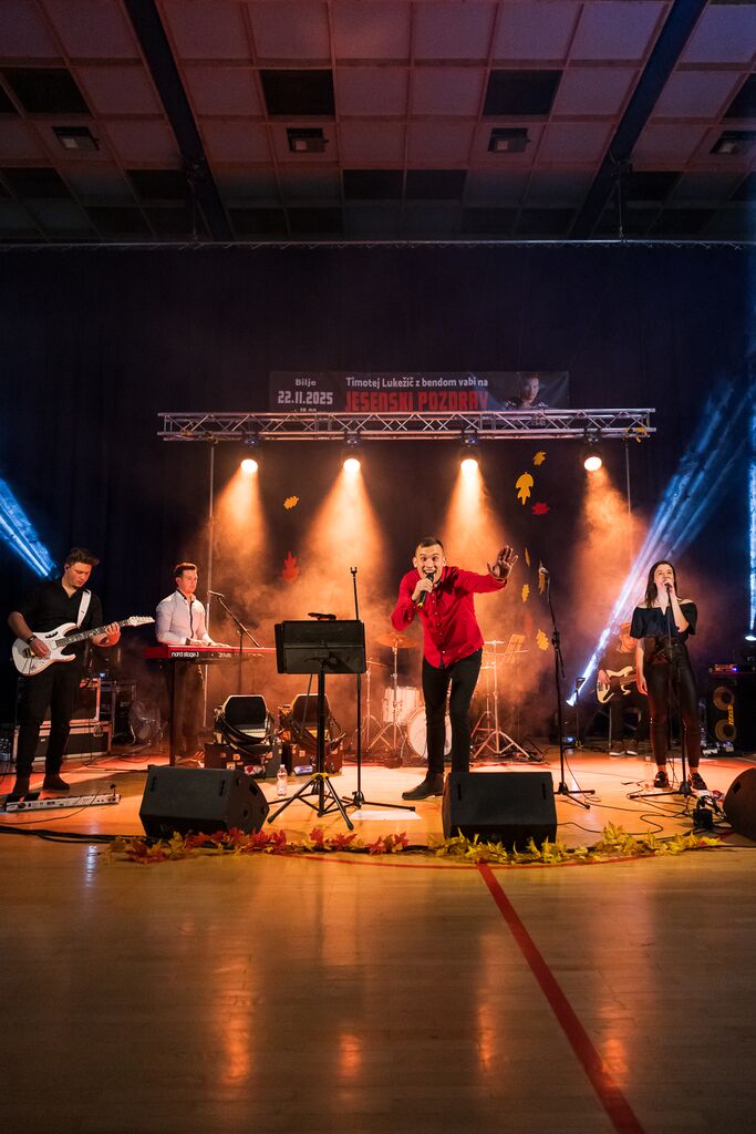 Timotej Lukežič z bendom nas je prepričal s svojo prisrčnostjo, toplino, predvsem pa s svojo ljubeznijo do petja in harmonike. Družbo na odru so mu delali člani njegovega benda: Miha Spačal na klaviaturah, Domen Marušič na kitari, Klemen Marušič na bas kitari, Carlos Valderrama na bobnih in Leja Keber z back vokalom. Timotej je v goste povabil tudi Ansambel Nejca Vidmarja ter mlade harmonikaše, ki so večer še popestrili.