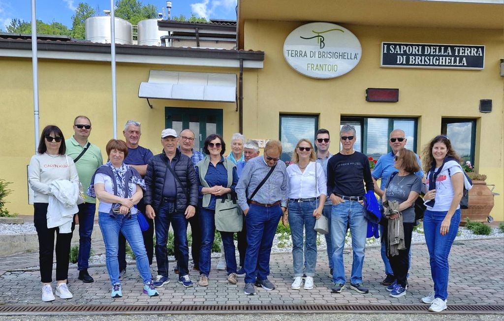 Prvi dan ekskurzije so se kraški oljkarji podali na spoznavanje področja srednjeveškega mesteca Brisighella, ki se nahaja med Firencami in Raveno ter velja za eno pomembnejših središč oljkarstva v severni Italiji. V Brisighelli so obiskali posestvo zadruge Terra di Brisighella, ustanovljene daljnega leta 1962 na pobudo tamkajšnjih kmetov z namenom izboljšanja in spodbujanja proizvodnje vina in oljčnega olja. Majhna zadruga je do danes zrasla v sodoben obrat z vinsko kletjo in tehnološko napredno oljarno, ki je za svoja oljčna olja leta 1996 kot prva v Italiji pridobila certifikat zaščitene označbe porekla D.O.P. (Denominazione di Origine Protetta). Prav ta oznaka potrjuje, da je olje pridelano, predelano in ustekleničeno izključno na določenem geografskem območju, z uporabo tradicionalnih metod in iz pretežno avtohtonih sort. Na področju Brisighelle so to sorte: Nostrana di Brisighella, Ghiacciola in Orfana. V okviru ekskurzije so si udeleženci ogledali lokalno oljarno, kjer so jim predstavili tehnološke postopke predelave in skladiščenja olja ter spoznali postopke certificiranja, merila za dodelitev označbe DOP ter pomen sodelovanja lokalnih pridelovalcev pri vzdrževanju visoke kakovosti oljčnega olja. Ob vodeni degustaciji oljčnih olj so lahko primerjali okuse, arome in teksture ter se seznanili s pravilnim senzoričnim vrednotenjem oljčnega olja.
