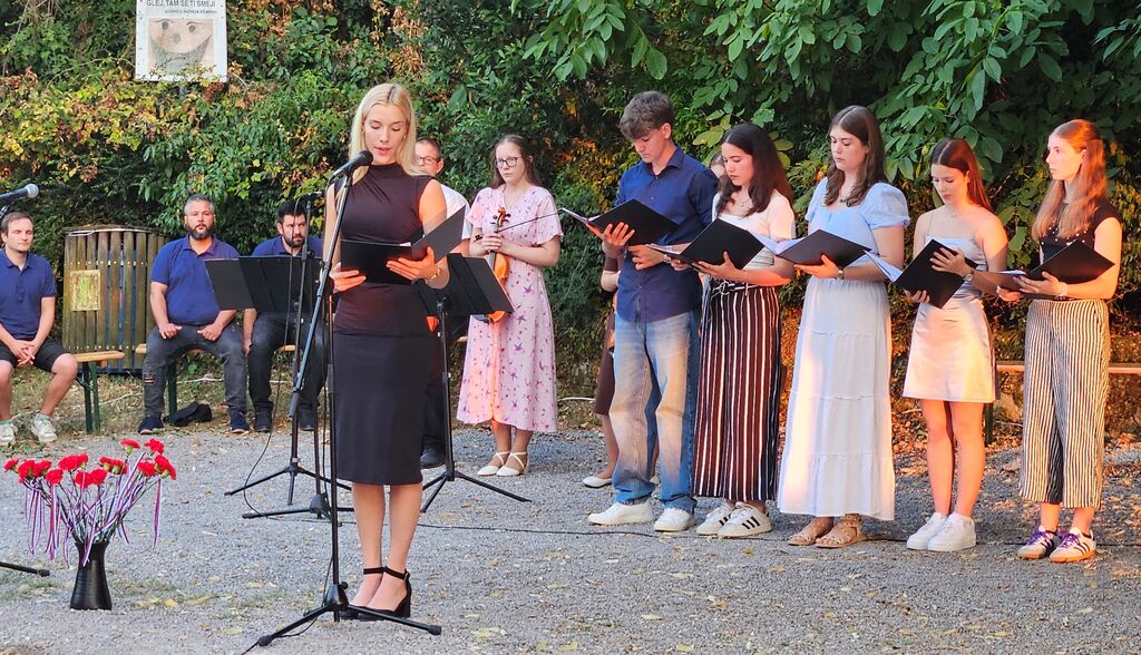 Obiskovalce smo opozorili na dve lipi, ki rasteta na Gradu: eno so ob osamosvojitvi zasadili mladi pevci, drugo pa sam Ciril Zlobec ob 20. obletnici, ko je bil na prireditvi naš slavnostni govornik. Večer se je zaključil z mislimi o domovini, ki so jih povedali osnovnošolci in zborovsko pesmijo O mraku.