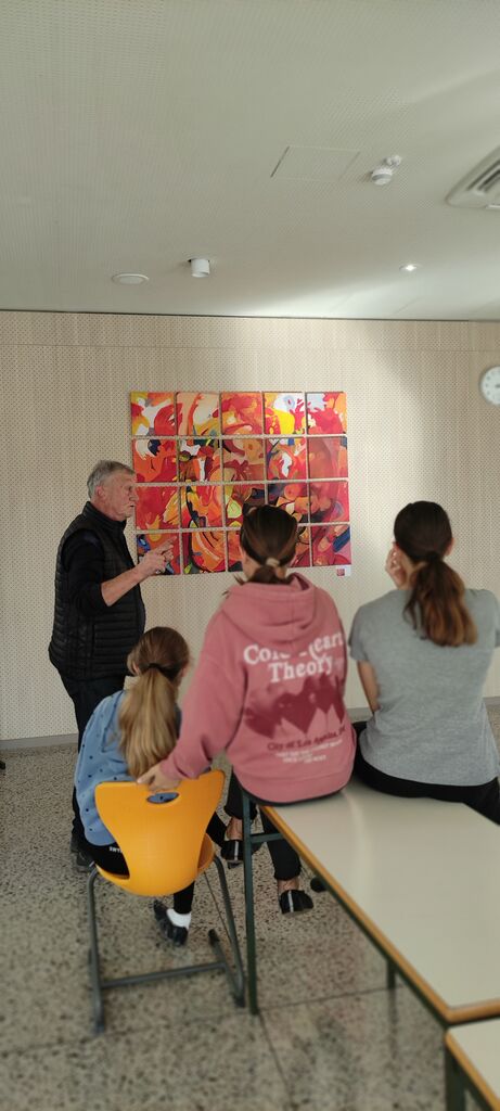 Po zaključeni nalogi so delo razstavili v avli OŠ Miren, kjer se je pridružil tudi sam avtor slike. Gospod Valič se je učencem prijazno predstavil, jim opisal svoje likovno delo ter z njimi delil svoj pogled na umetnost, ustvarjanje in učenje.