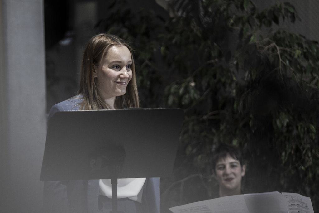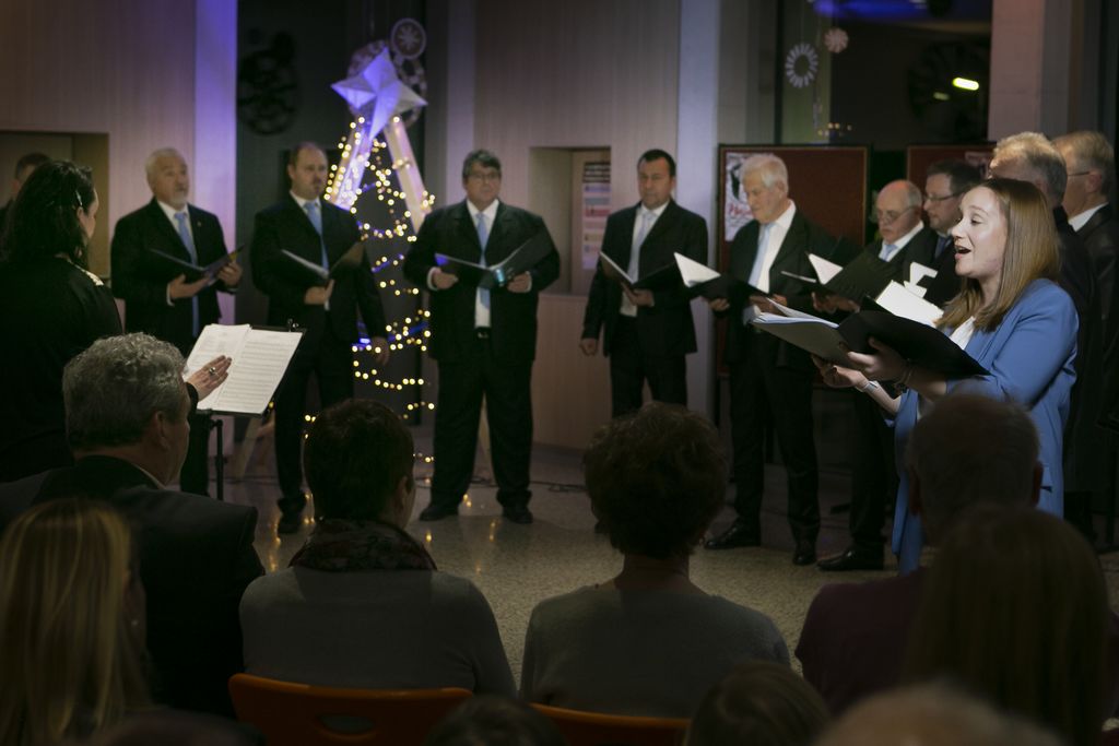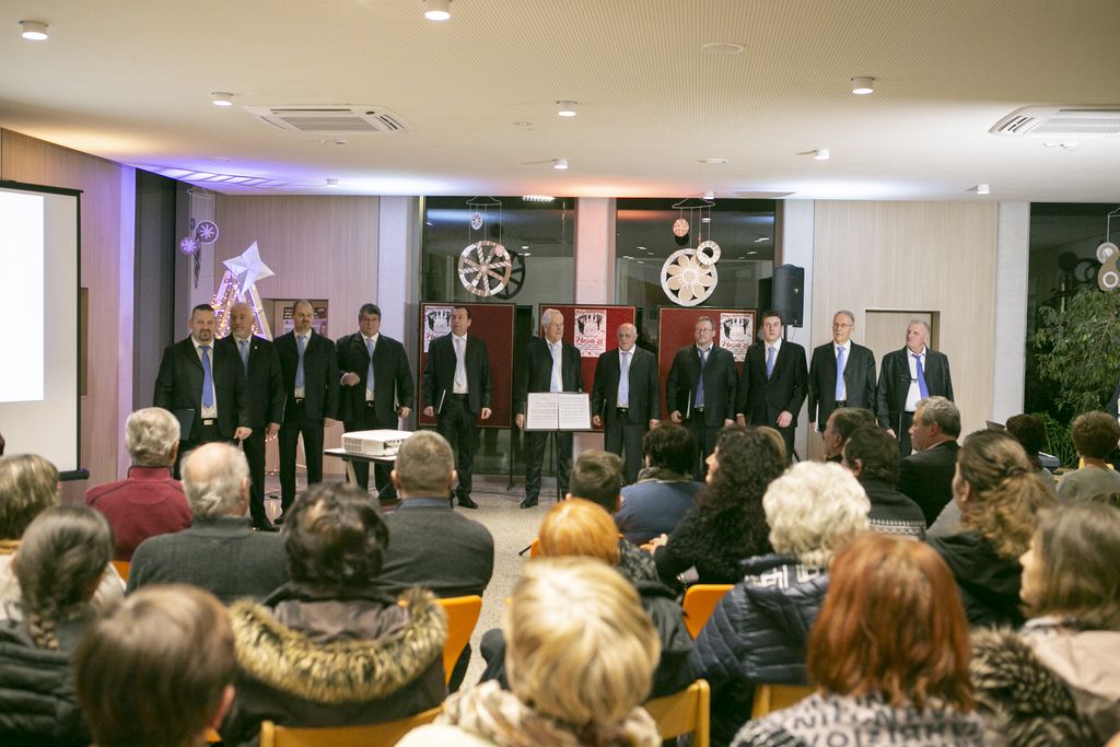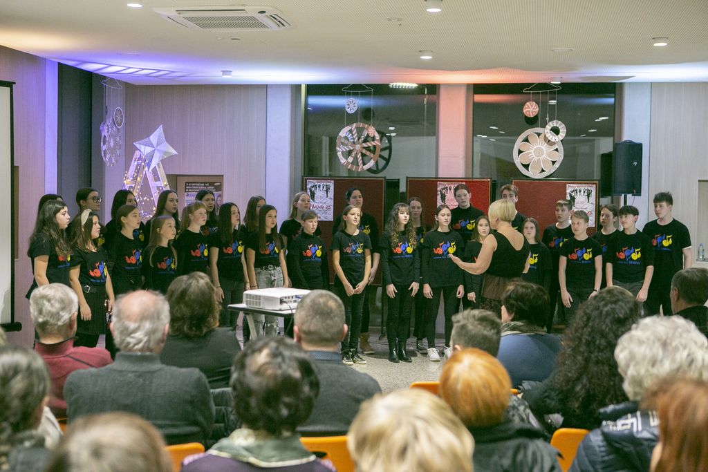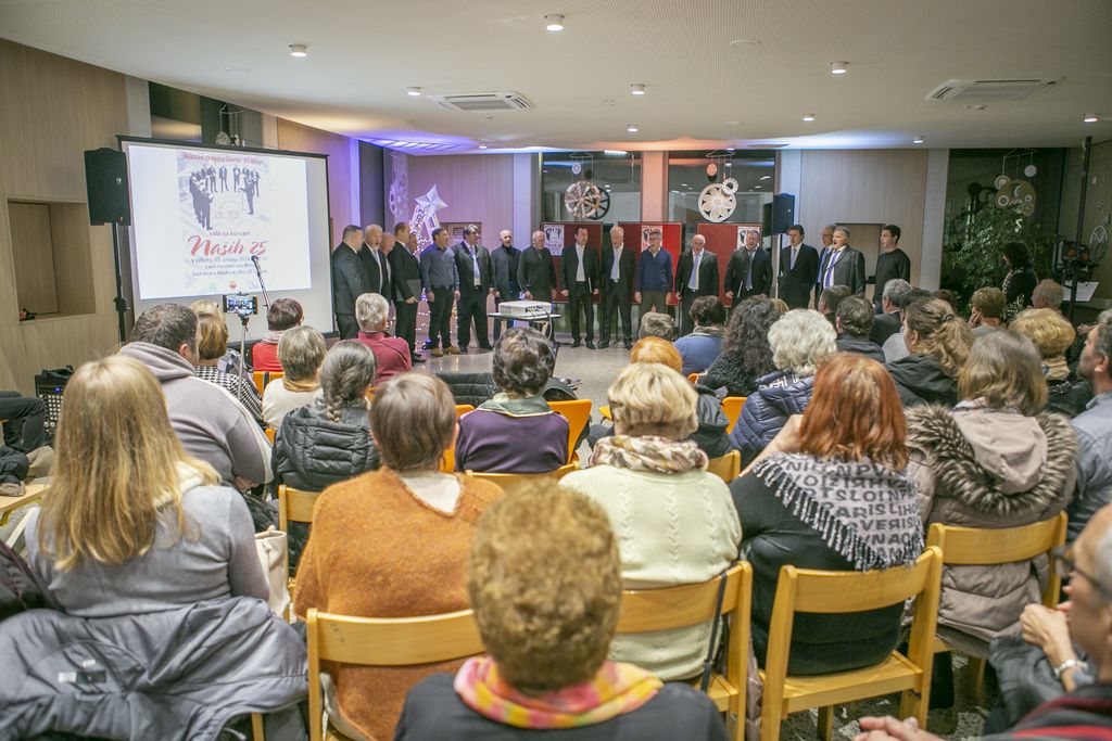 Na koncertu so najprej slavljenci, ki jih je tokrat v odsotnosti umetniškega vodje Vladimirja Čadeža vodila Ana Zalar, začeli z božičnim programom, sledila je solistična predstava Ivane Jug ob spremljavi Damijane Čevdek Jug, nato pa še nastop Mladinskega zbora. Za spremljavo na klavirju sta poskrbeli Andreja Velikonja Skomina in Ingrid Mačus, na harmoniki pa Daniel Budin.