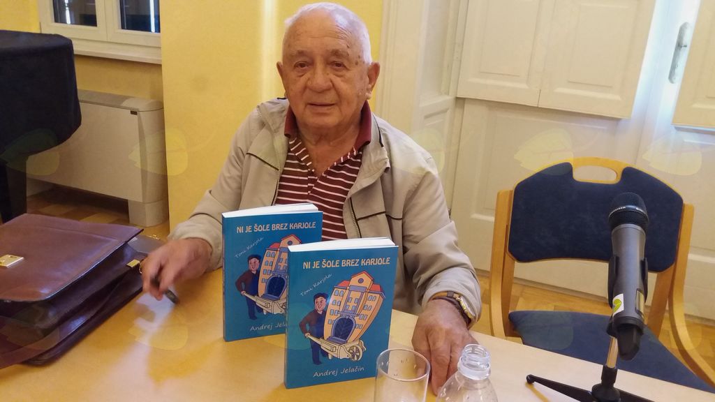 V Mirnu je tokrat predstavljal svojo tretjo knjigo z naslovom Ni je šole brez karjole. Pogovor je vodila Marta Pavlin, s harmoniko pa je dogajanje dodatno razgibal Timotej Lukežič.
