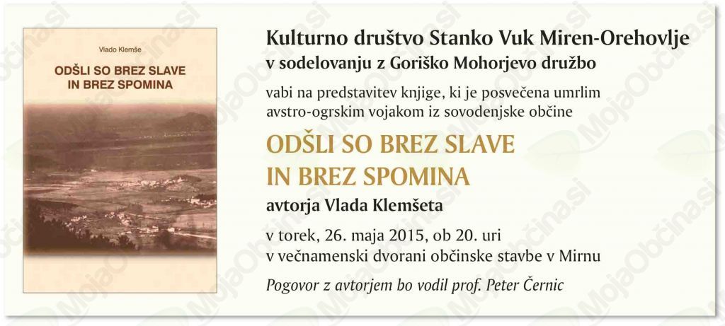 Tokrat so povabili avtorja Vlada Klemšeta, da nam je predstavil svojo knjigo o 1. svetovni vojni. Pogovor je vodil Peter Černic. Knjigo Odšli so brez slave in brez spomina je izdala Mohorjeva družba v Gorici.