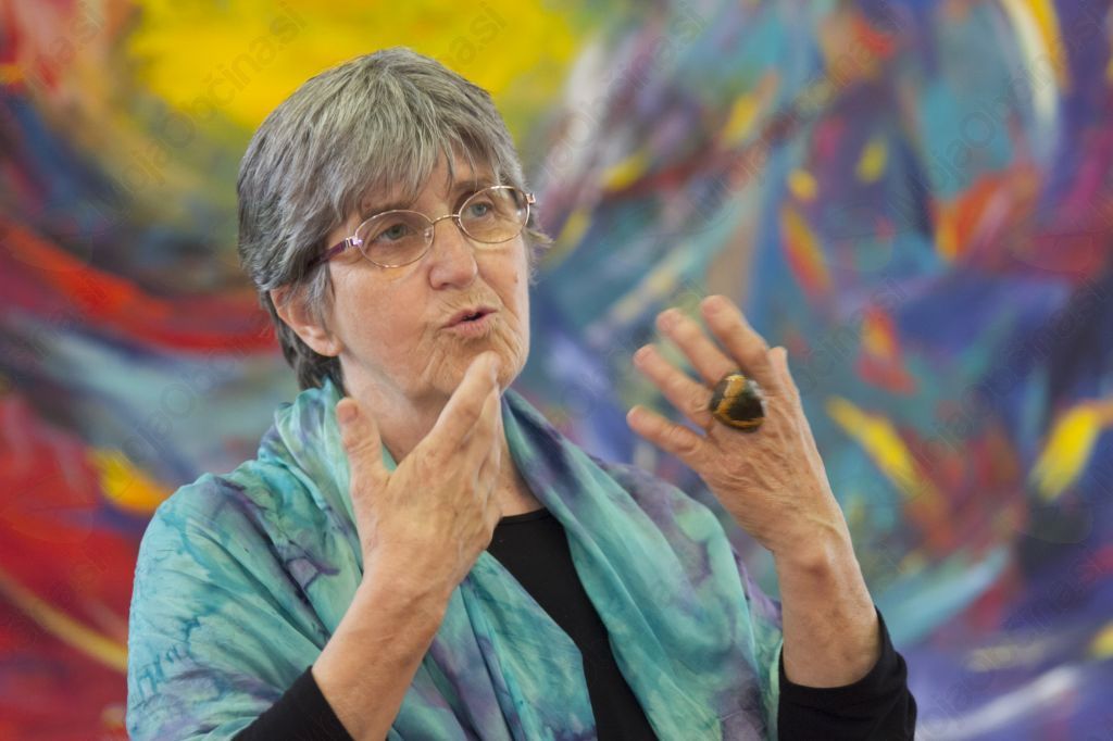 Slikarka se nam tokrat predstavja s svojimi abstraktnimi deli različnih velikosti in oblik, ki jim je skupna izrazita moč barv s katerimi želi avtorica prikazati močno osebno doživljanje Boga kot Ljubezni. Sama pravi, da je že od prvih del vsaka njena slika izraz ljubezni do Boga, zato vsaka nosi v sebi pečat sakralnega in hkrati osebnega doživljanja. Svoj poklic tako pojmuje kot posebne vrste poslanstvo, služenje in dajanje. Zelo pogost motiv njenega opusa sta zapuščeni Jezus in osamljena Marija. Nekakšna dodatna vrednost svetega in posvečenega pa zažari v njenih upodobitvah rojstva, padca, zadnje večerje, križanja, dogodka v Emavsu ali v delih Frančiškovega ciklusa in podobnih vsebinah.